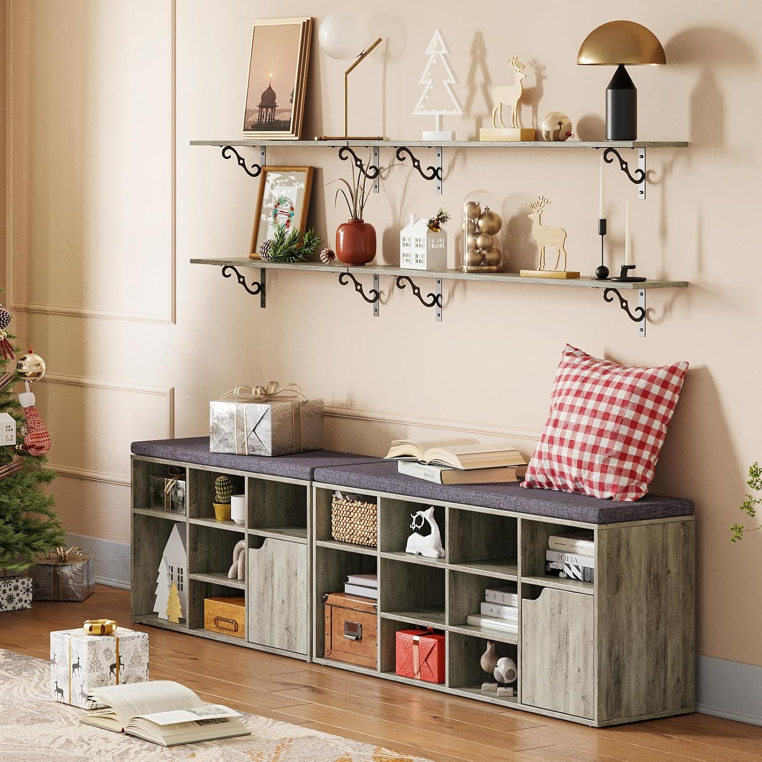 - ăAge with Grace in Any SettingăTurn your any wall into a real eye-catcher space with these large wall shelving. Long and wide enough for plates, glasses, books, legos, collection or towels etc. Make a statement in entryway, bathroom, balcony, study, kitchen, laundry, bar area, pantry