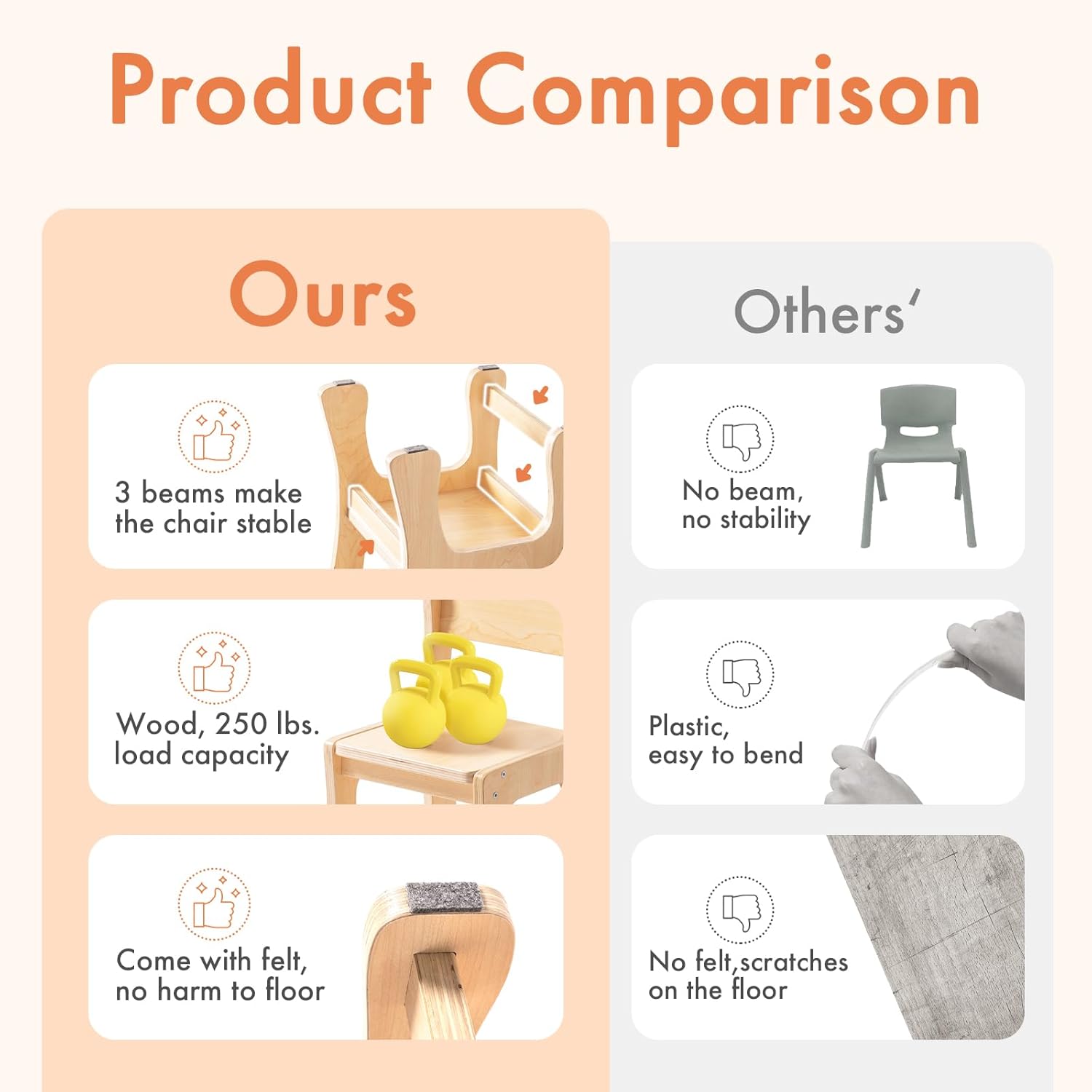 - 【Solid Construction】 Unlike flimsy plastic alternatives, our kids wooden chair is built to last with sturdy screw assembly, ensuring stability and durability.