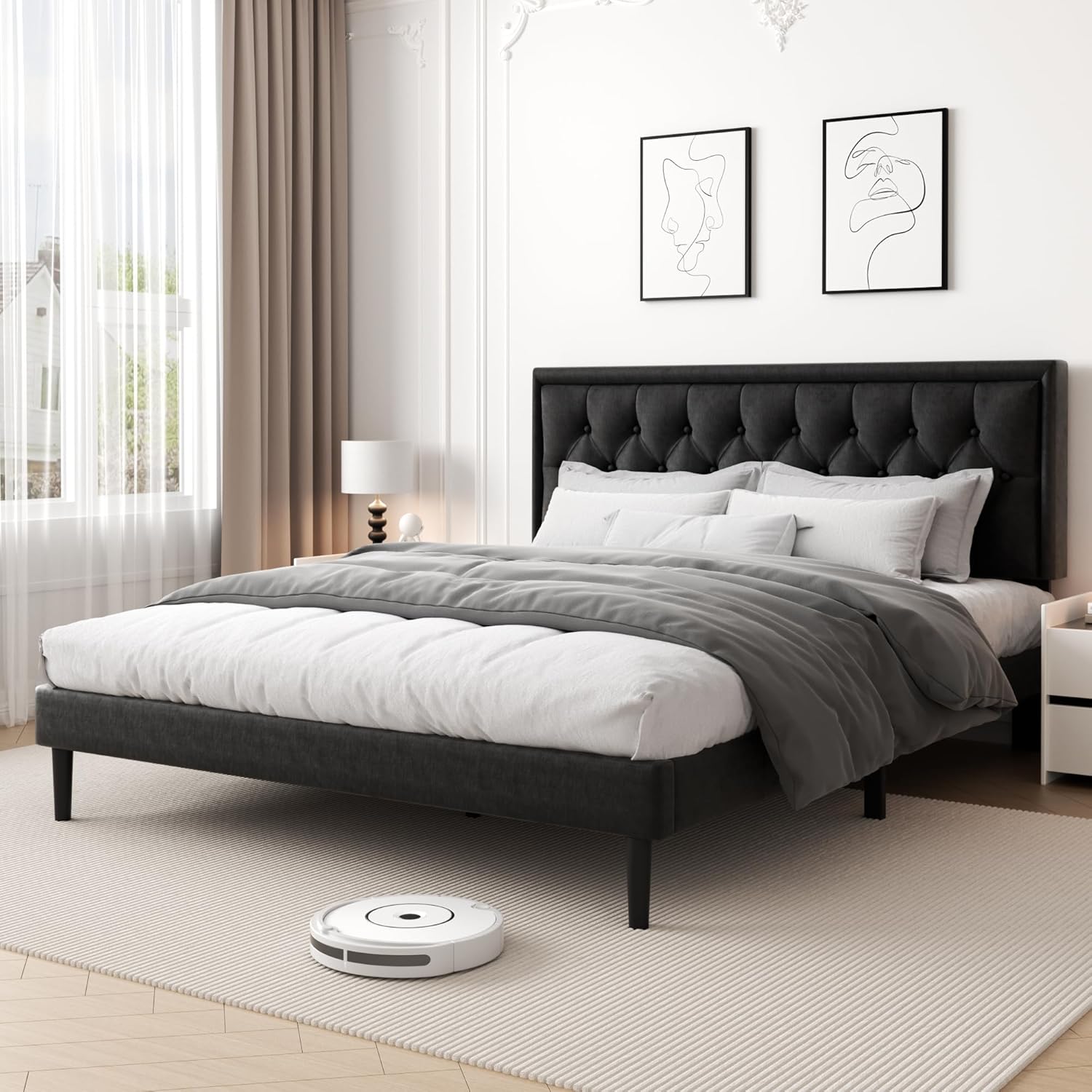 - Classic Charm: Designed with a modern tufted button headboard, smooth velvet, and soft sponge wrapping the entire bed frame, which adds sophisticated style to any bedroom