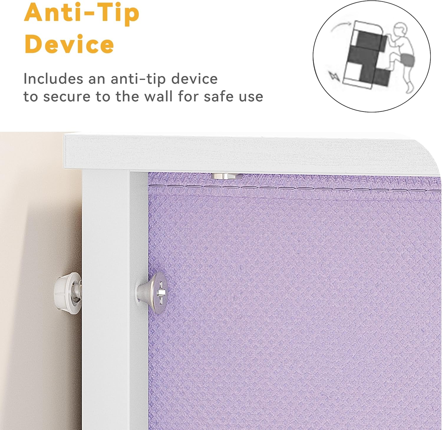 - SAFETY FIRST- Minimal assembly required with easy-to-read instructions, safety kit, and accessories included; Wall anchoring is recommended to prevent tipping; Overall size: 17.7''L x 11.8''W x 37.4''H; Drawer dimensions: 15.7" L x 11" W x 8.3" H