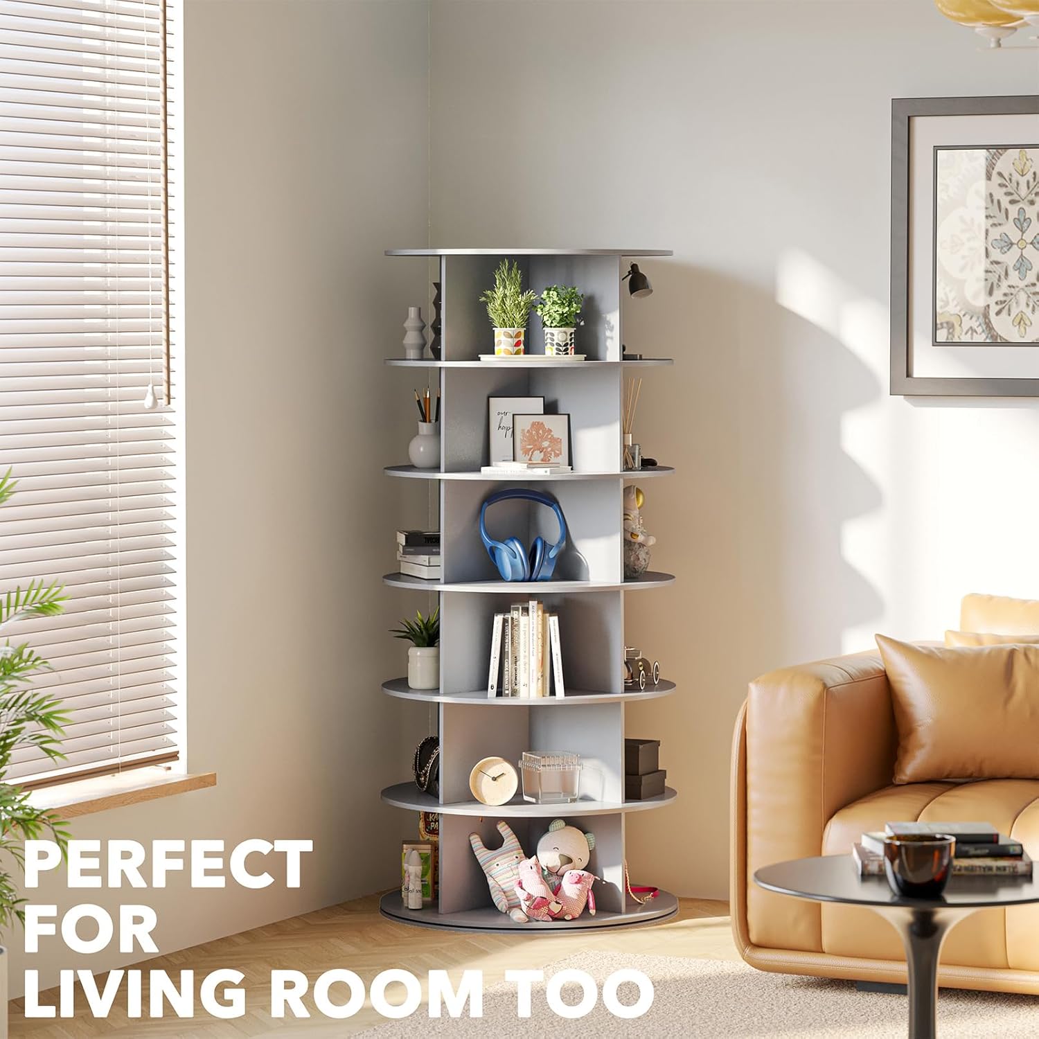 - 6-TIER GRAY SHOE DISPLAY HOLDER - Keep your home clean and keep track of your shoes better with this spinning shoe rack tower; Makes every shoe visible and save so much of your room closet storage space