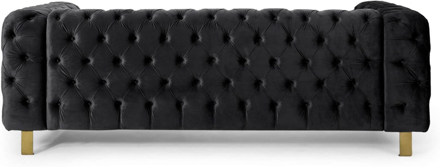 Merax Comfy 3-seat Sofa with Tufted Back and Arm and Gold Iron Legs, Modern Couch for Living Room, Bedroom, Apartment, Office, Black