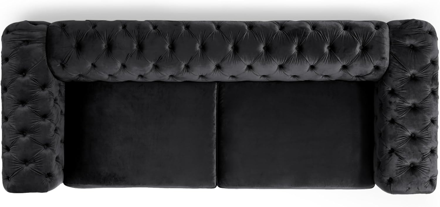 - 🌟【Modern Glam Aesthetic】The Merax sofa showcases a tuxedo arm design and diamond-shaped button tufting, which pair beautifully with sleek lines and velvet fabric to create a modern glam look. The gold accents add a touch of elegance to any decor.