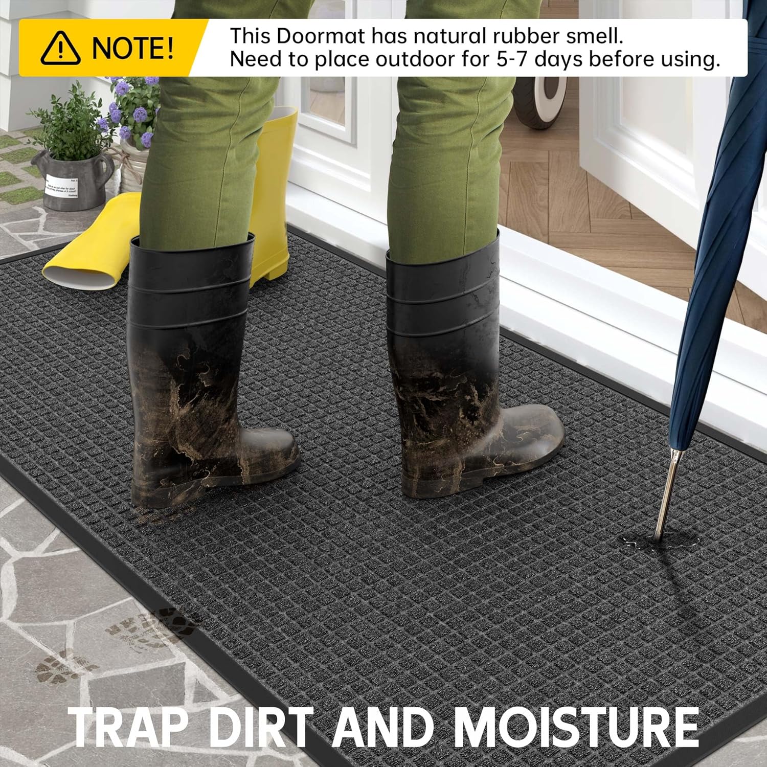 Sturdy Front Door Mat Outside Entrance, 6' x 4' All-Season All-Weather Doormat Waterproof, Stain and Fade Resistant, Natural Rubber Indoor Outdoor Welcome Door Mat Trap Dirt