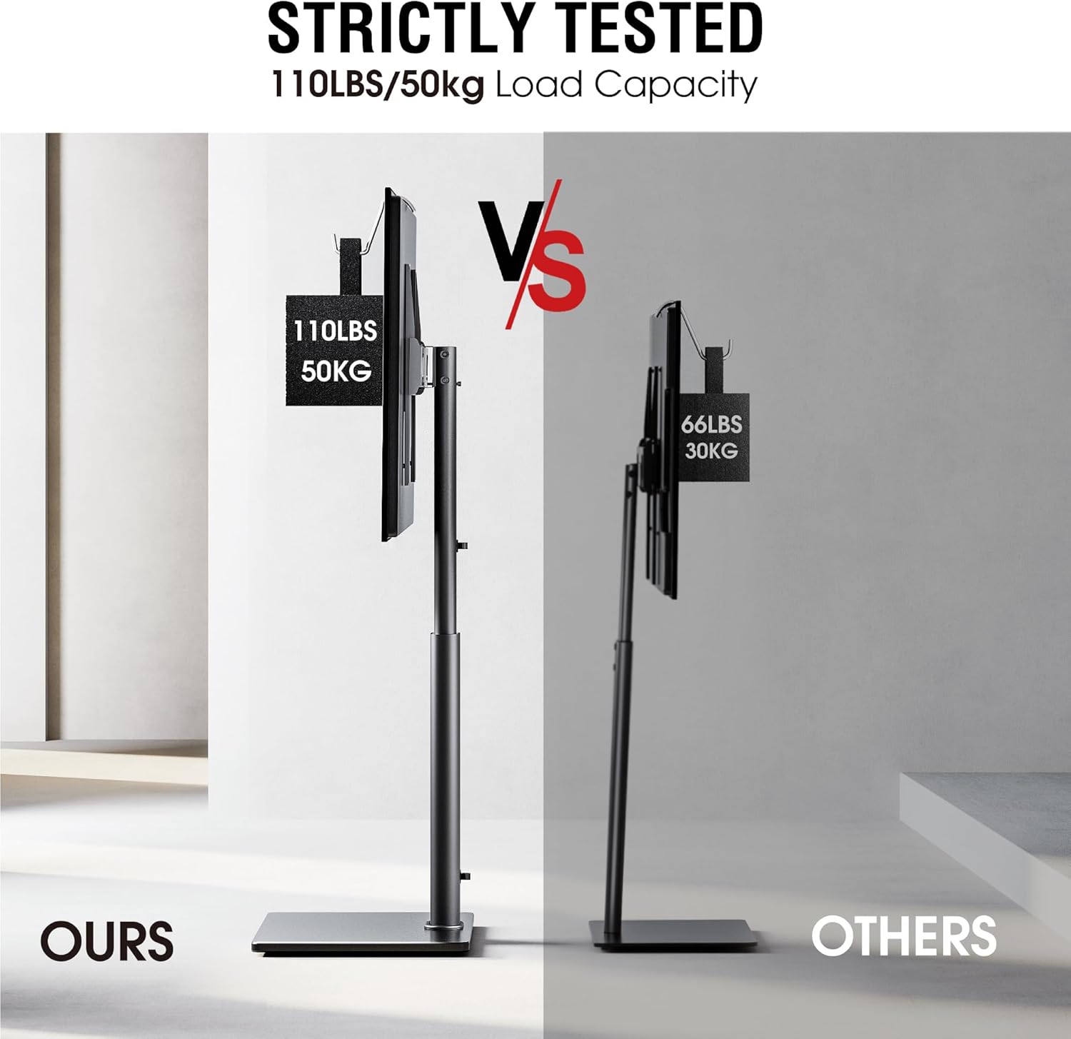 - 【Wide Compatibility for 43"-75" TVs】- Our floor TV stand is designed to fit most TVs ranging from 43" to 75", including popular sizes like 55"/65" /70"/75" flat or curved screens.To ensure the correct tv floor stand mount is purchased, please verify the screen size, weight, and VESA size before purchasing within weight up to 88 lbs and VESA sizes from 100x100mm to 600x400mm