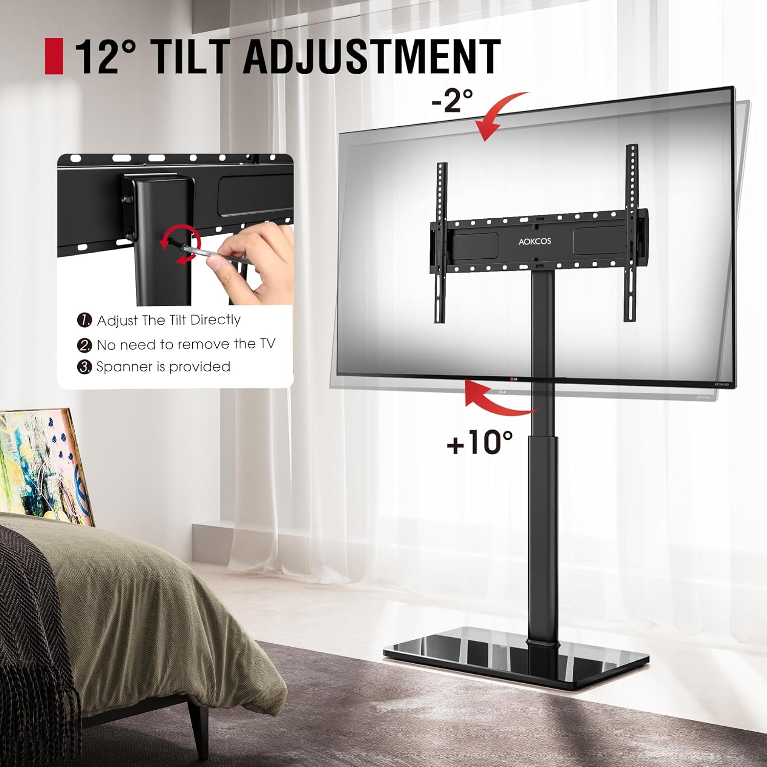 - 【Upgraded Swivel & Tilt Adjustment】- Easily swivel your screen 25° left or right and tilt from -2° to 10° to optimize viewing angles with this new swivel 75 inch TV stand. The upgraded tilt adjustment allows for simple angle changes by turning the long screws on the back