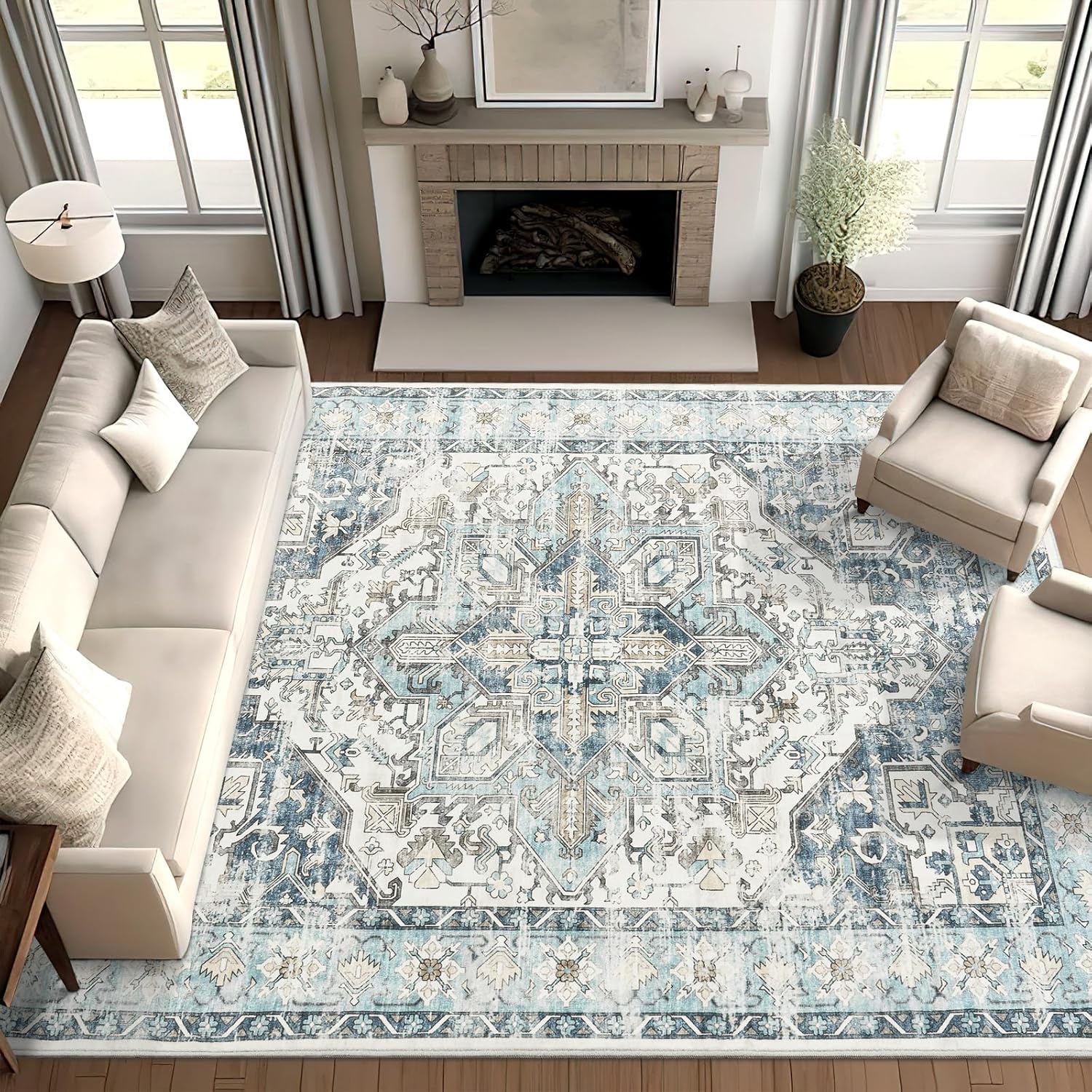 zesthome Area Rugs 6x9, Large Rugs for Living Room, Stain Resistant Washable Rug, Rugs for Bedroom with Non Slip Backing, Ultra-Thin Vintage 6x9 Area Rug