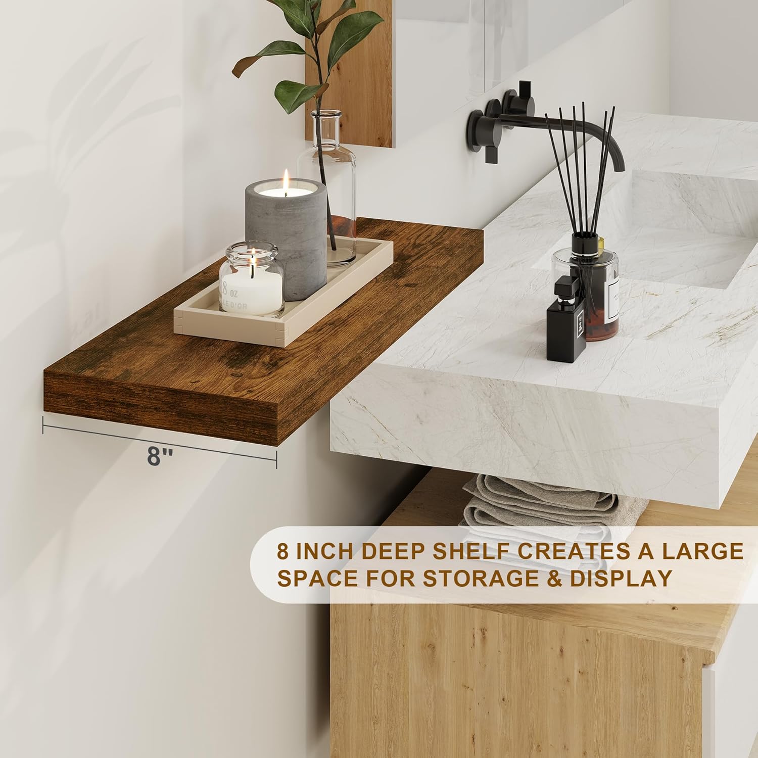 Fun Memories Floating Shelves 55 Inch Long, 8 Deep Floating Shelves for Wall, Large 55 x 8 Display Shelves for Living Room, Kitchen, Wood Deep Wall Shelves for Home Storage, Rustic Brown, 1 Pack