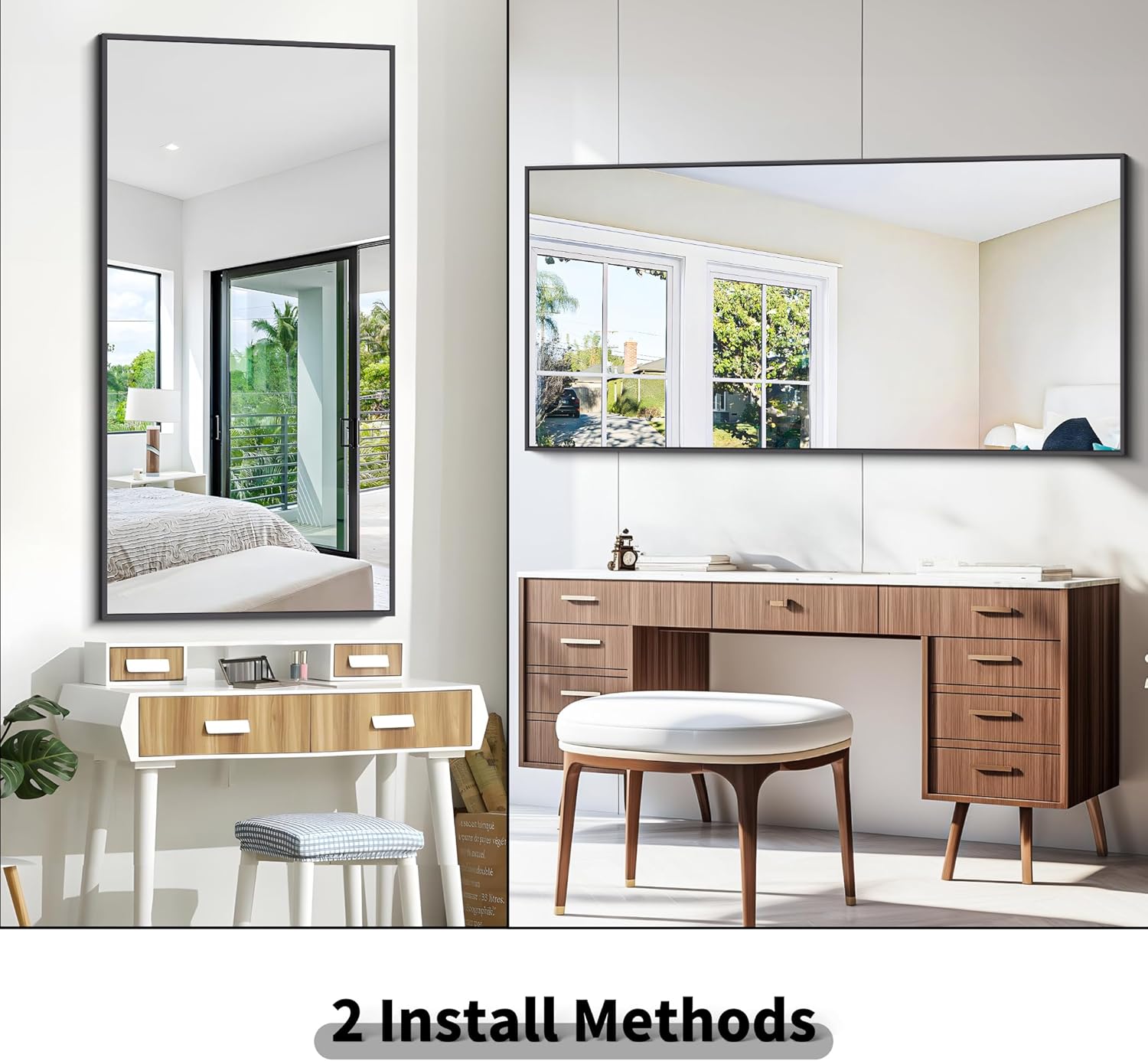 BONEWEI Bathroom Mirror,30x60 inch Large Wall Mirror for Bathroom Wall Mounted Black Rectangle Corner Mirrors,Black Bathroom Mirror for Living Room,Farmhouse,Bedroom Entryway,Horizontal/Vertical