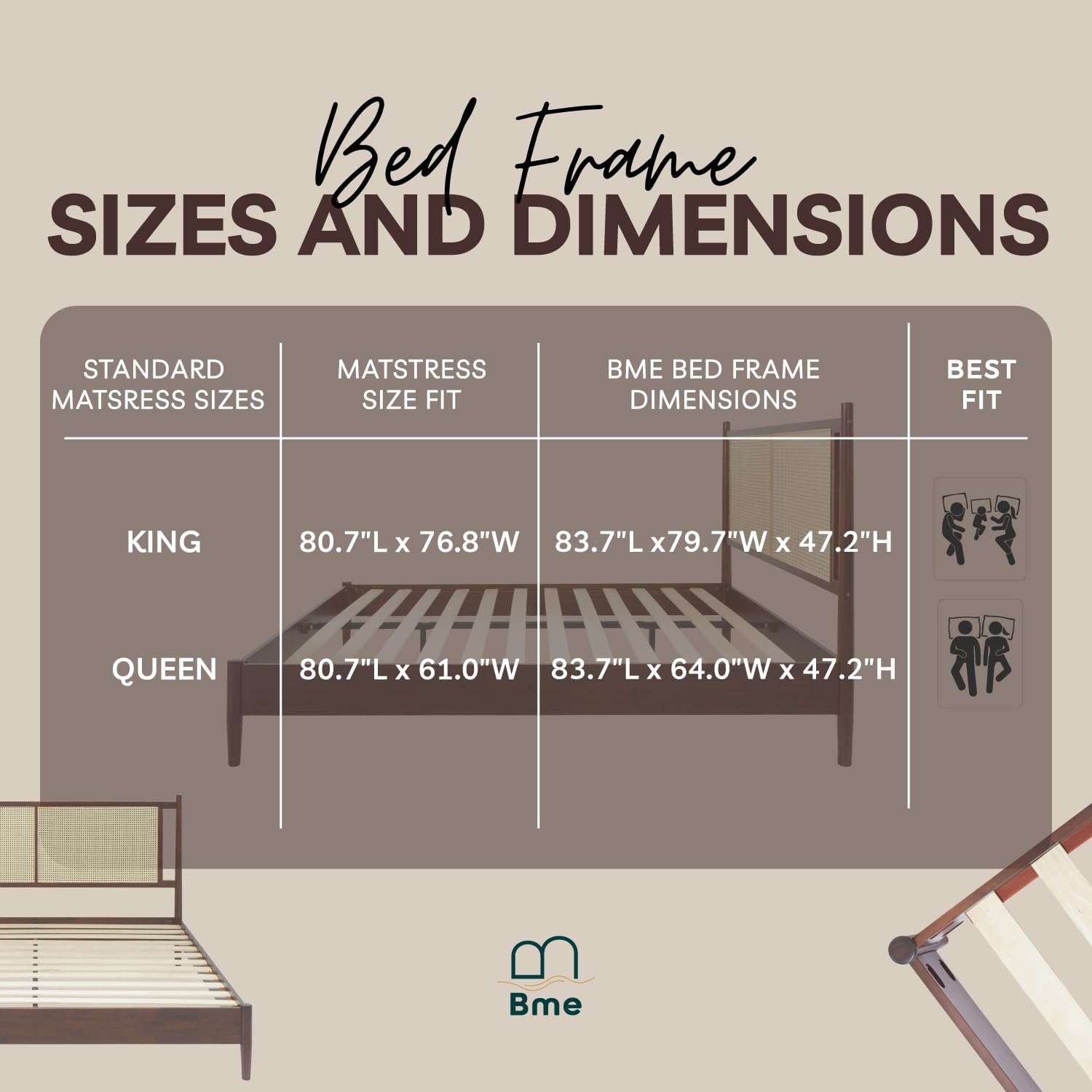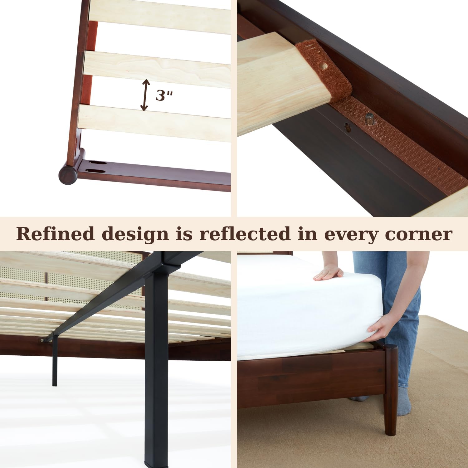 - STURDY CONSTRUCTION: The queen platform bed frame with a thick and sturdy solid wood frame improves even weight distribution; Wood slats are strong enough to support up to 800 pounds in both queen and Queen sizes of our cane bed