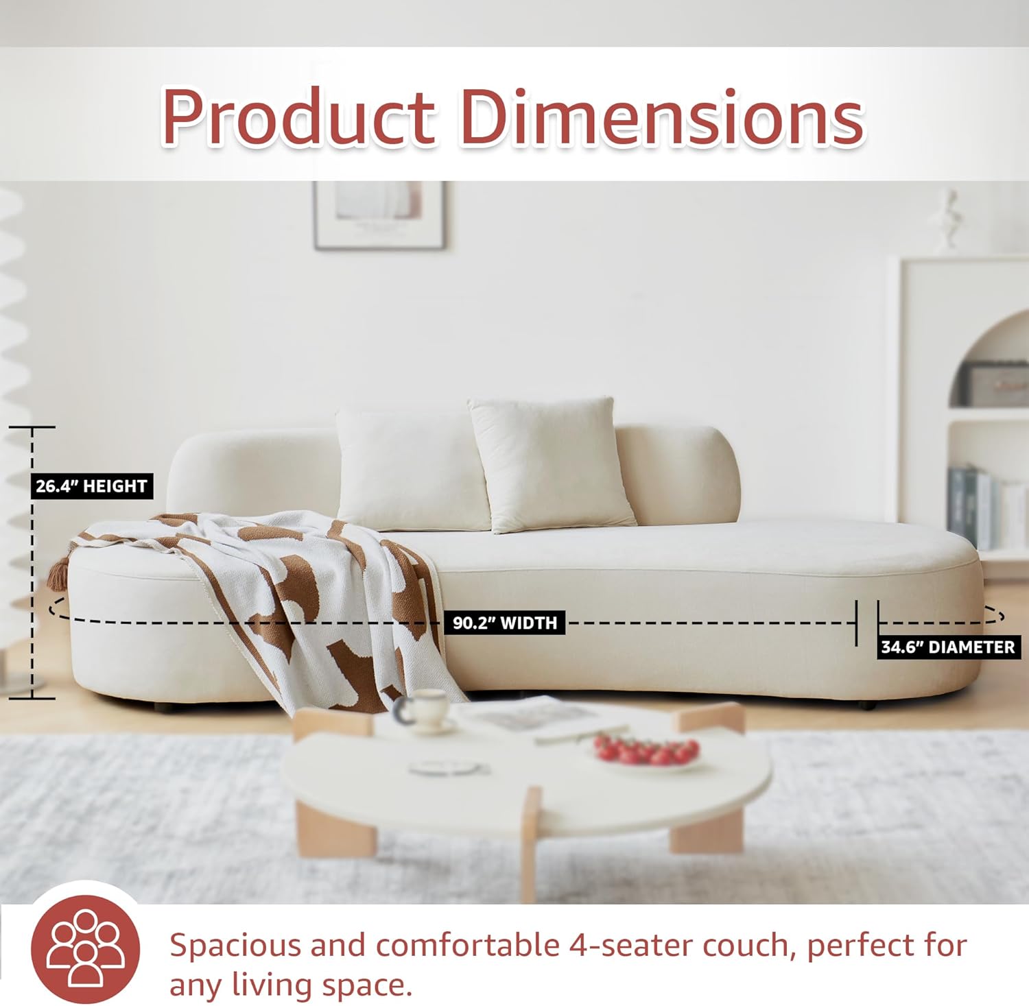 - SPACIOUS 4 SEATER SOFA : With dimensions of 90.2"W x 34.6"D x 26.4"H, this curved velvet sofa offers ample seating for family and friends, ensuring everyone can enjoy its luxurious comfort