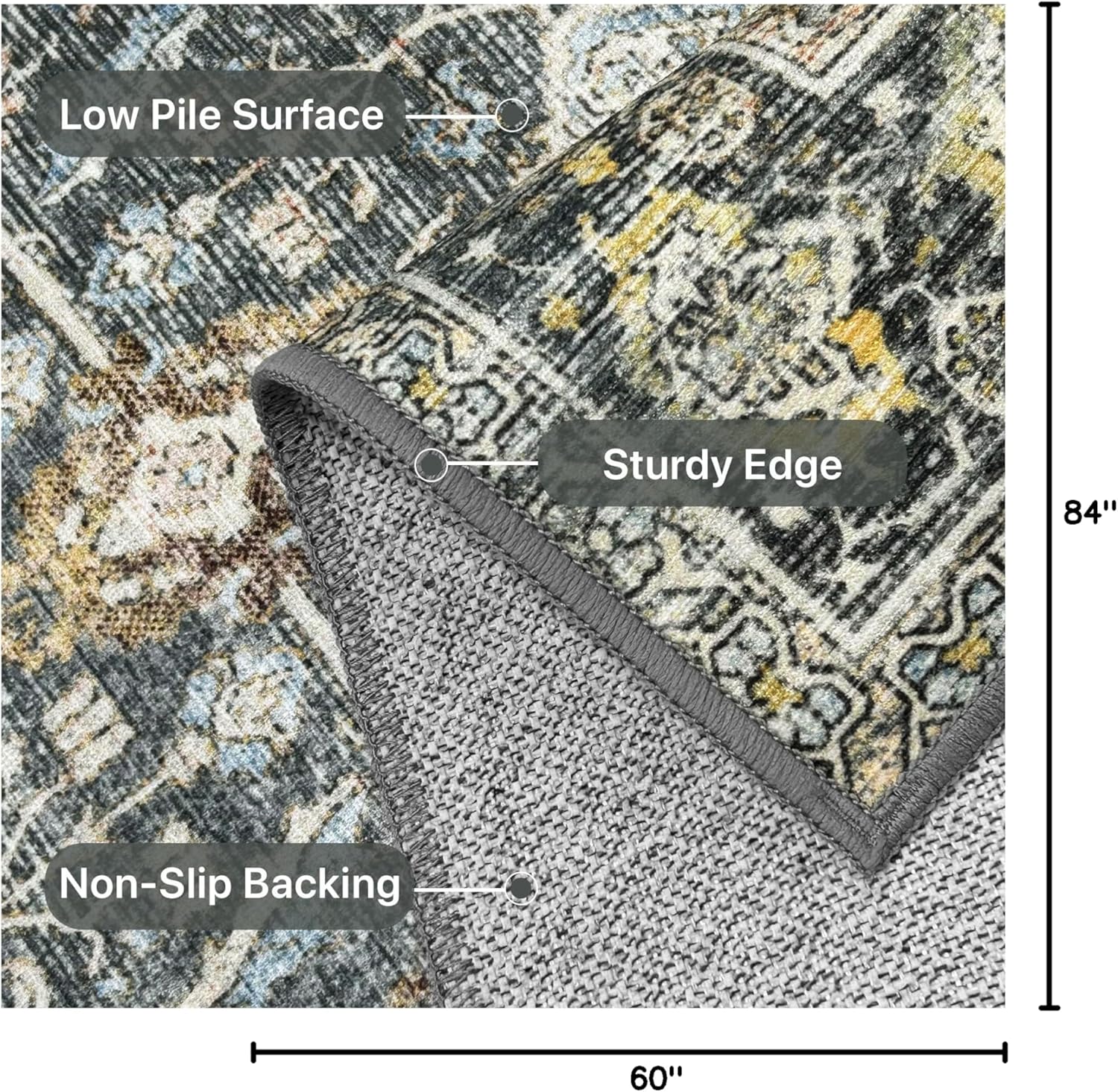 5X7 Area Rugs Machine Washable Rugs for Living Room, Vintage Boho Large Rugs for Bedroom Dining Room, Non Slip Indoor Soft Distressed Lightweight Thin Low Pile Carpet, Terracotta