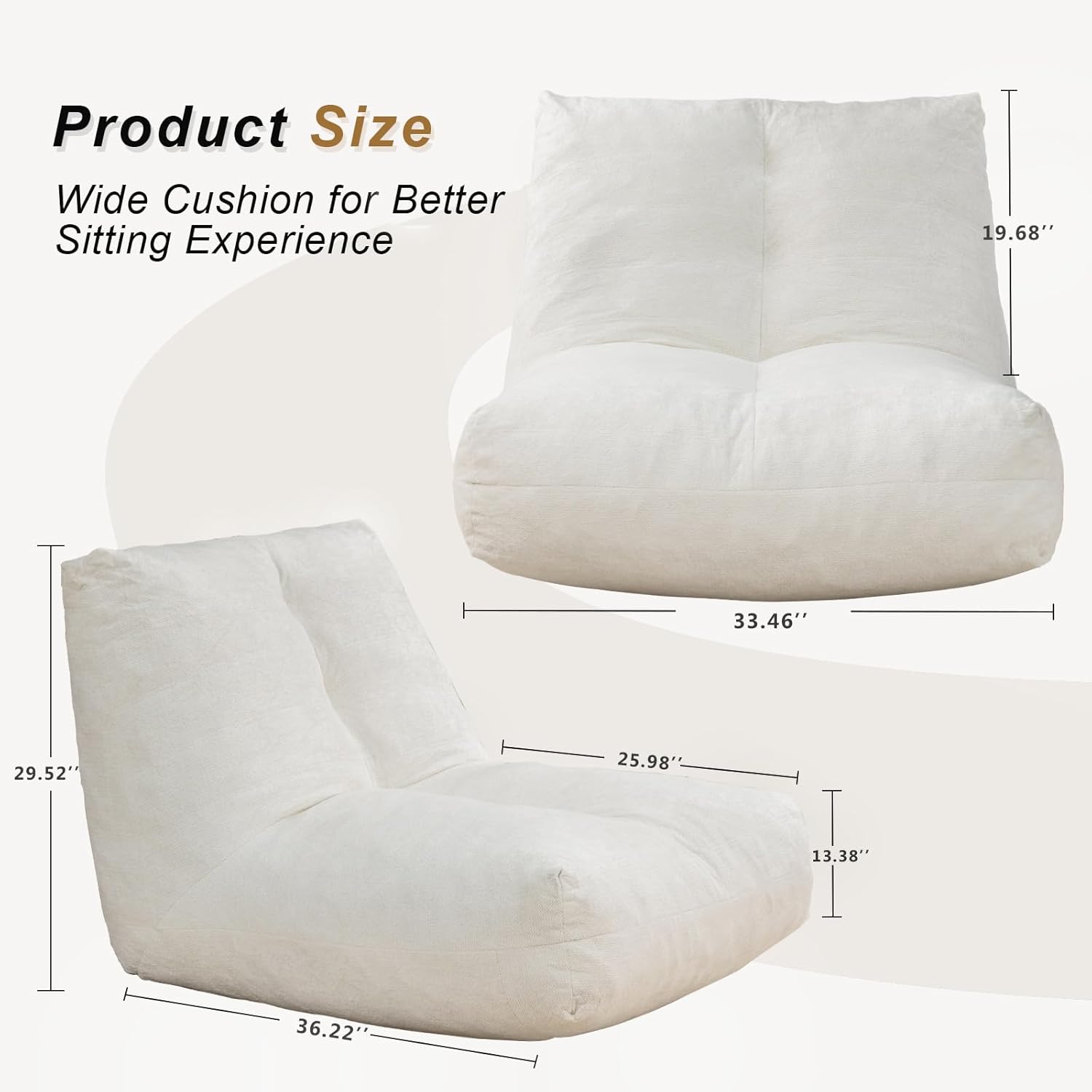- 【SPACIOUS SINGLE SOFA】 The bean bag sofa's 33.46“ wide, 29.53” high and 13.38” thick, very spacious and comfortable single seat for anyone in the family. In addition, the chair is lightweight and can be moved around.