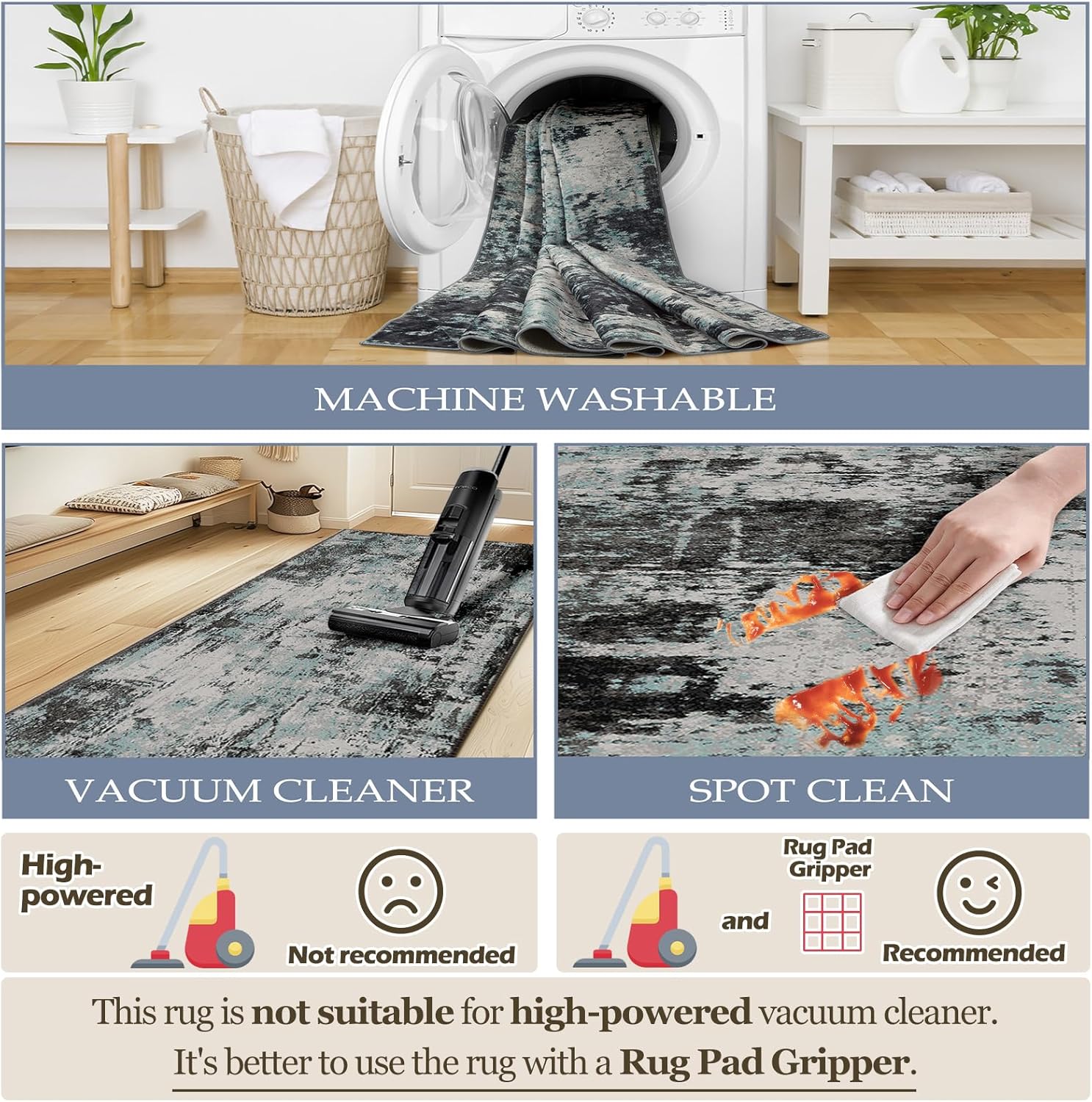 - Tides Series – Effortless style that flows with your life.This modern machine-washable non-slip rug features reinforced edges and a low-pile design that resists dirt. Its water-repellent surface makes spills easy to clean - liquids bead up for quick wiping. Simply machine wash in cold water (no bleach) to refresh. The non-slip backing keeps it securely in place. A perfect blend of function and contemporary design for active homes.
