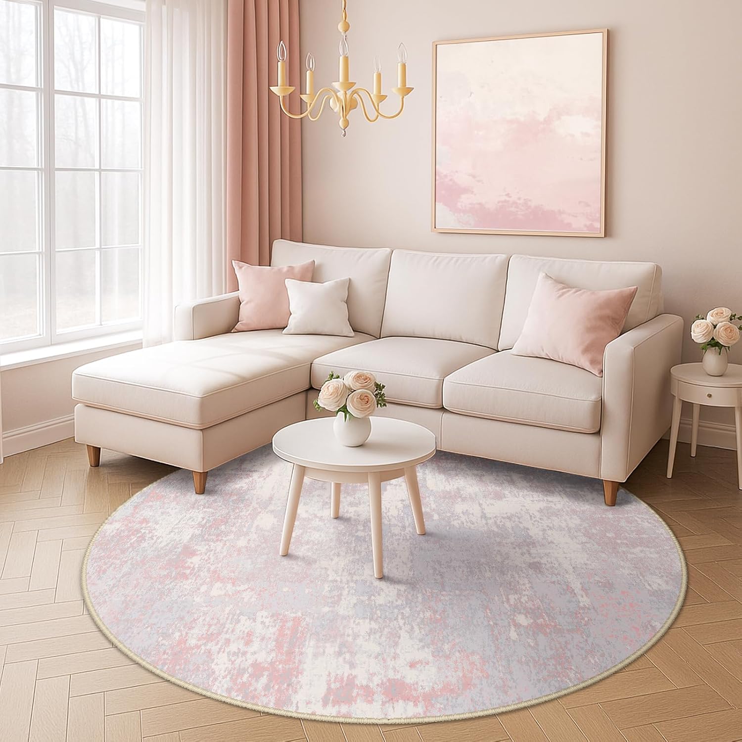 Washable Area Rugs 8ft Non-Slip Modern Abstract Soft for Living Room Entryway Bedroom Nursery, Print Pattern, Grey Pink