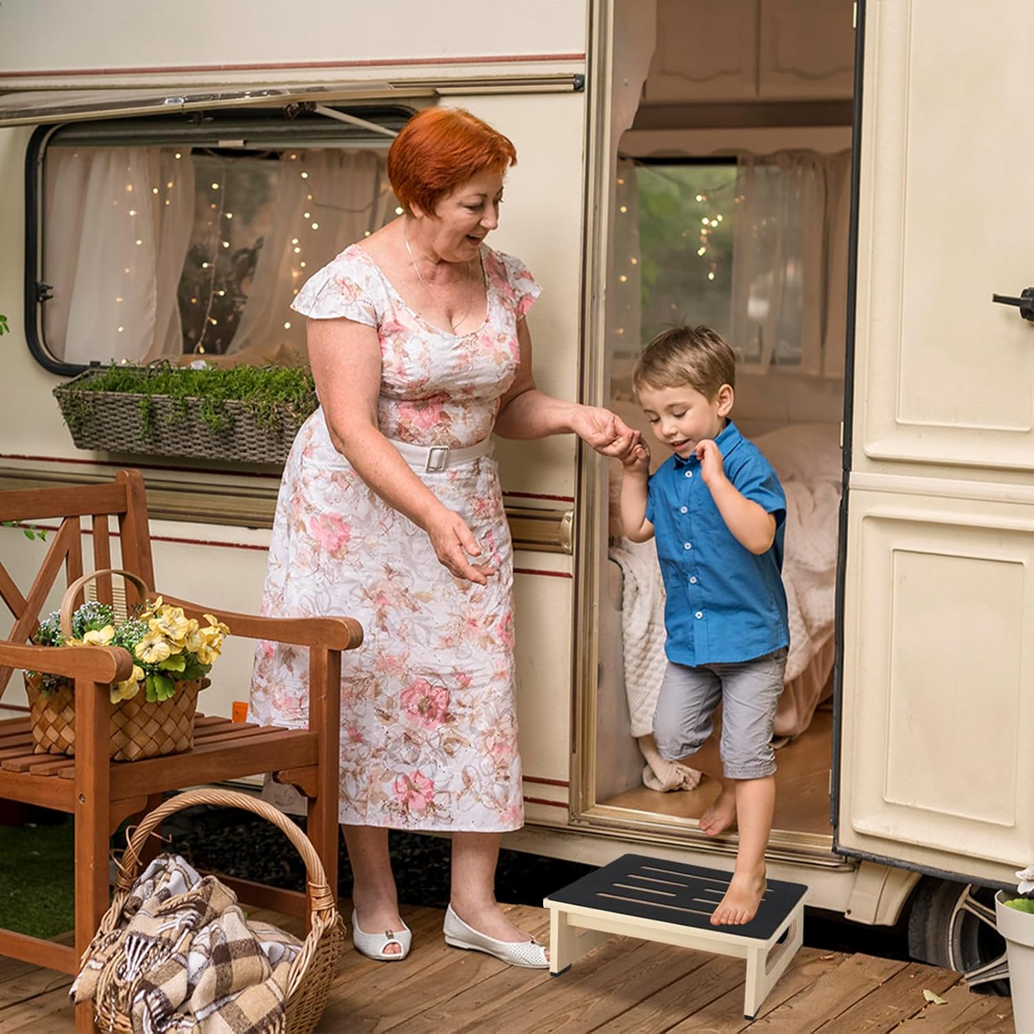 - ăMore Than One Functionă : Available for outdoor and indoor use, as a RV step stool for getting in car, door entrance steps, bathtub step stool, toilet step stool, bedside step stool or office footrest step. It aids in reaching the kitchen shelf and serves as a convenient kitchen step stool for adults, useful for those recovering from surgery or battling joint problems. Of course, the step stool is perfect as a gift to show you care