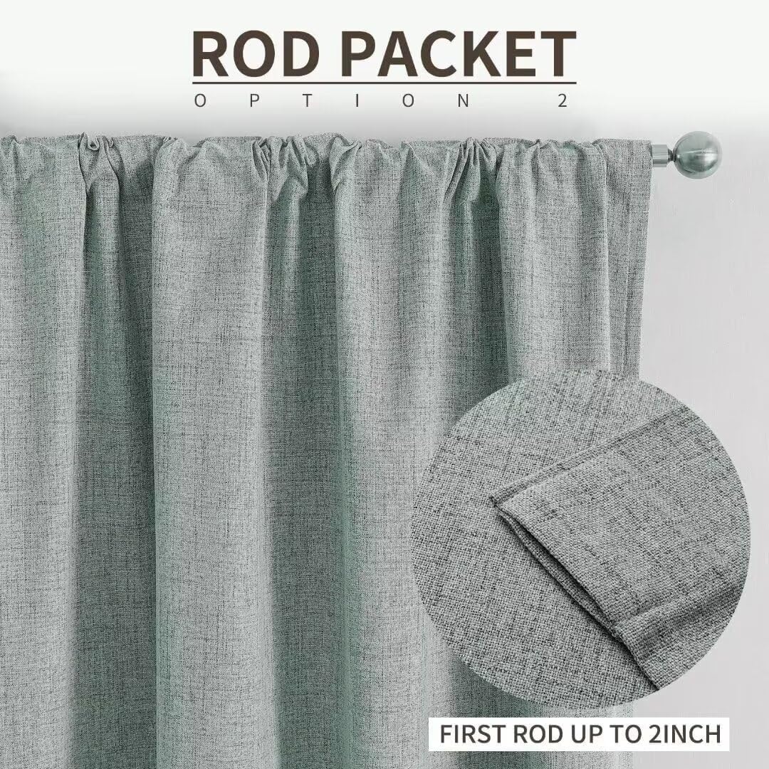 Joydeco Natural Linen Curtains 108 inch Length 2 Panels Set Burg 100% Blackout Patio Door Curtain Room Darkening Sliding Door Curtains Thermal Insulated Back tab Rod Pocket(105x108 inch, Sage Green)