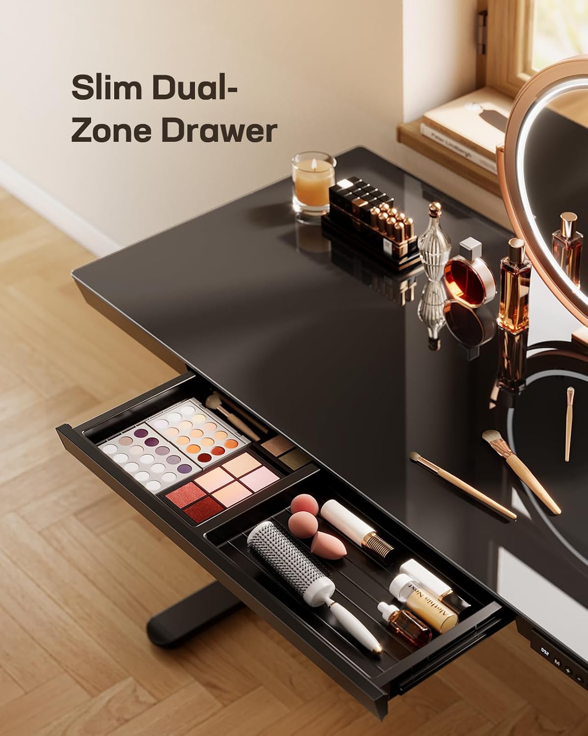 - Stay Charged, Stay Connected: The glass standing desk features integrated USB-A and Type-C charging ports located on the front panel. Keep your essential devices including smartphones, tablets, or smart watches fully powered and easily accessible when needed.