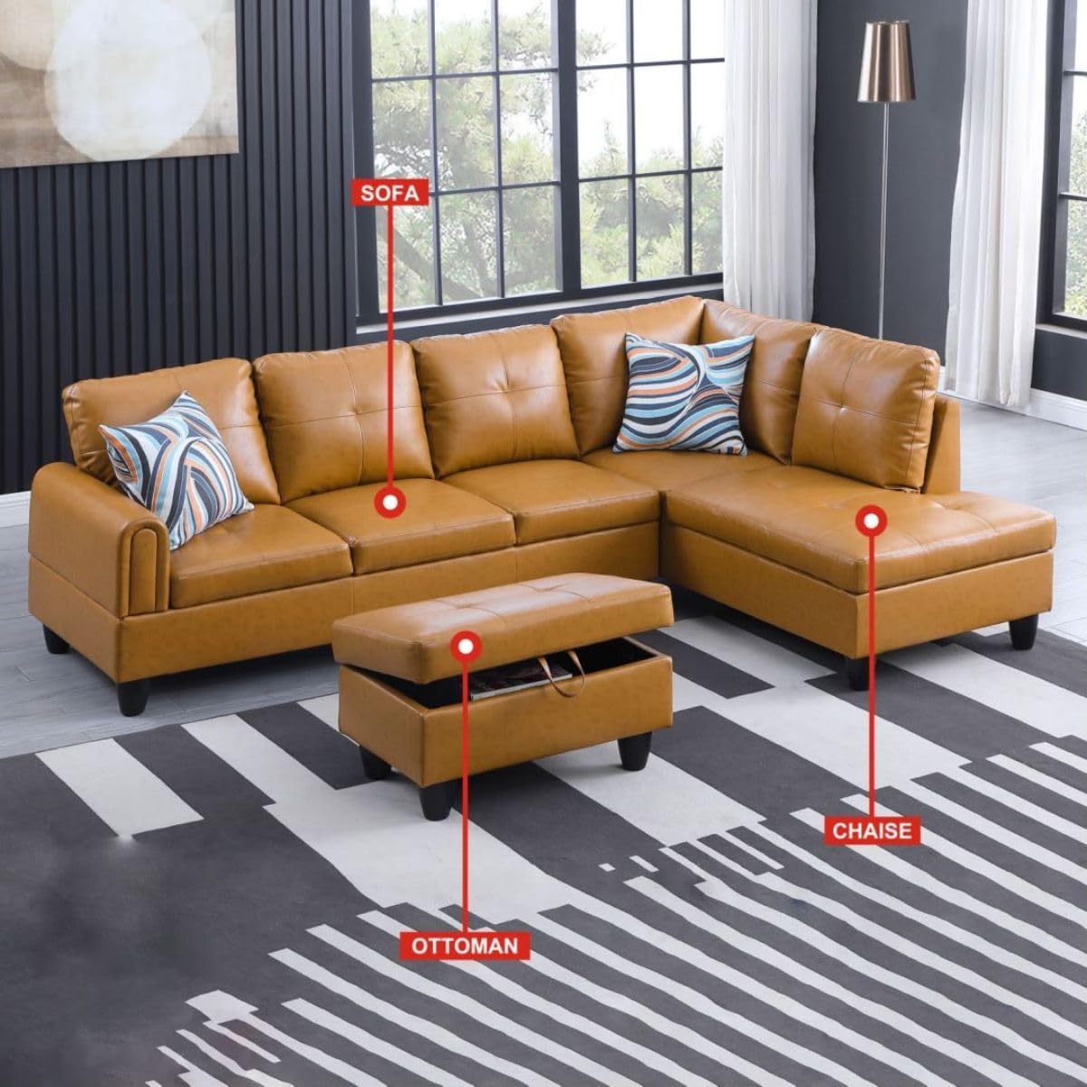 - Classic Look: Our 3-Piece Couch Living Room Sofa Set, designed in a classic L-shaped style, exudes timeless elegance. The combination of its sleek design and ottoman creates a sophisticated and stylish addition to any living room.