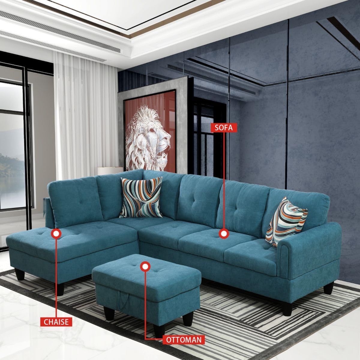 - Classic Look: Our 3-Piece Couch Living Room Sofa Set, designed in a classic L-shaped style, exudes timeless elegance. The combination of its sleek design and ottoman creates a sophisticated and stylish addition to any living room.