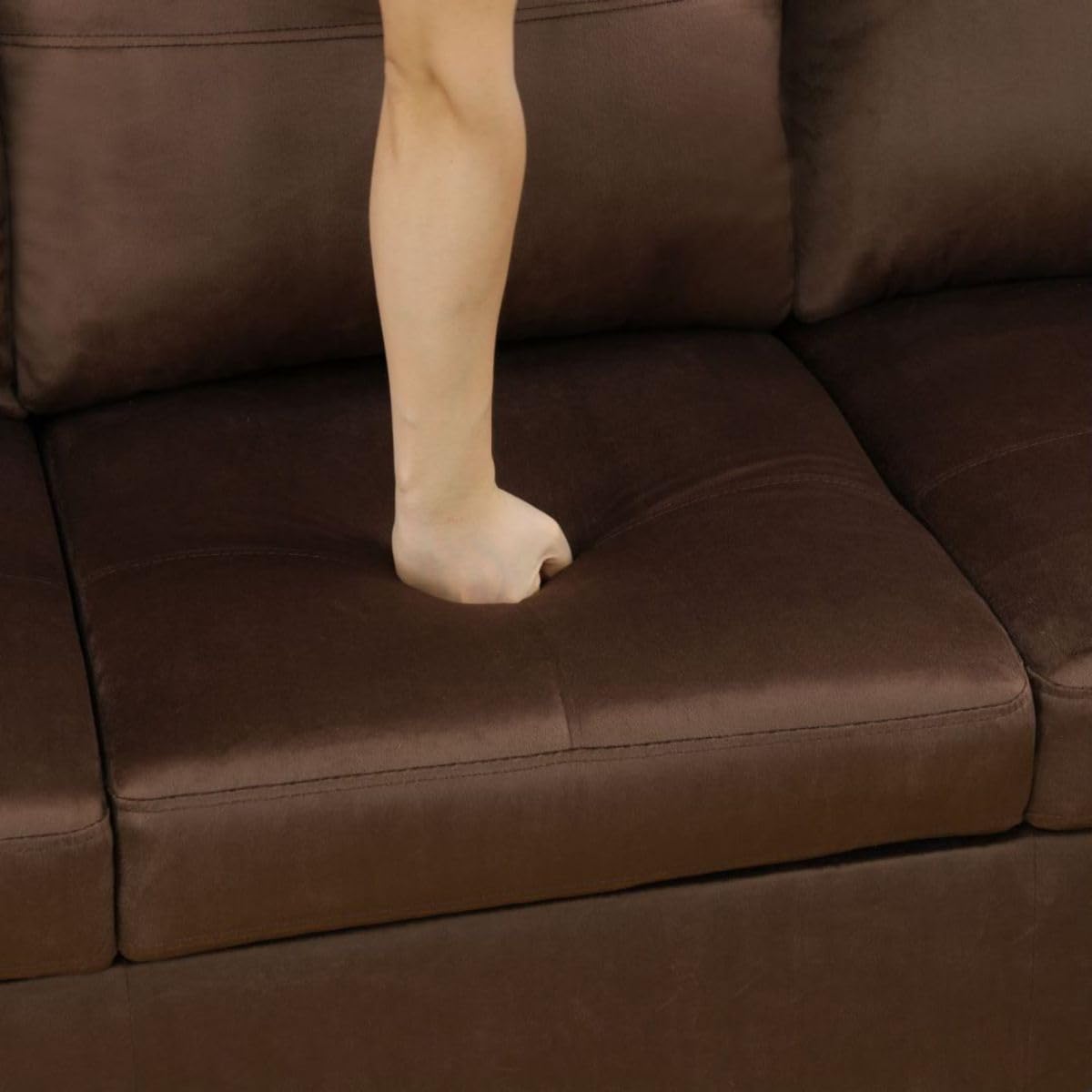Chocolate L-Shaped 3-Piece Flannel Sofa with Storage Ottoman Set, Sectional Couch Sofa Set for Living Room, Office, Small Space