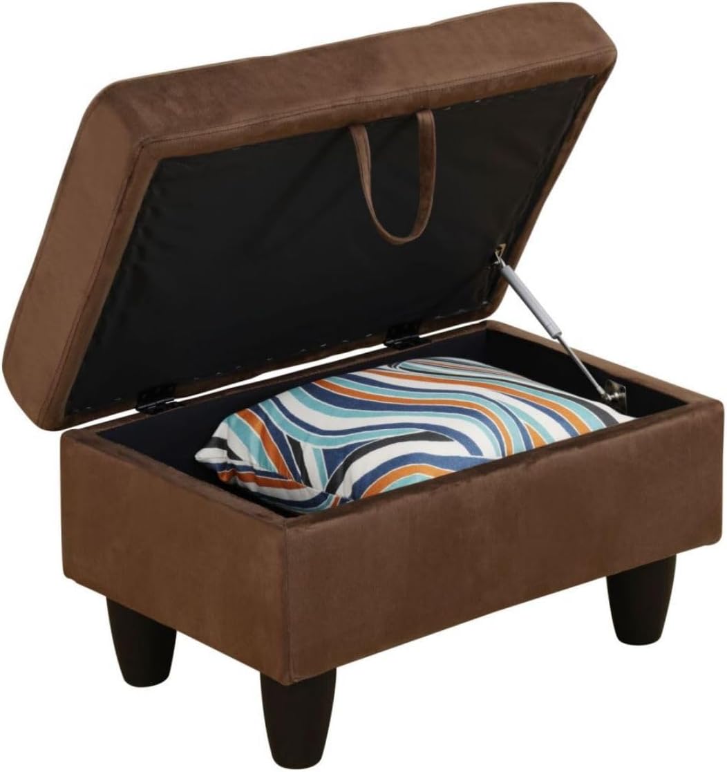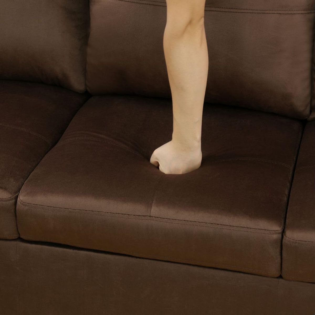 Chocolate L-Shaped 3-Piece Flannel Sofa with Storage Ottoman Set, Sectional Couch Sofa Set for Living Room, Office, Small Space