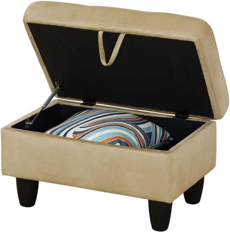 Beige L-Shaped 3-Piece Flannel Sofa with Storage Ottoman Set, Sectional Couch Sofa Set for Living Room, Office, Small Space