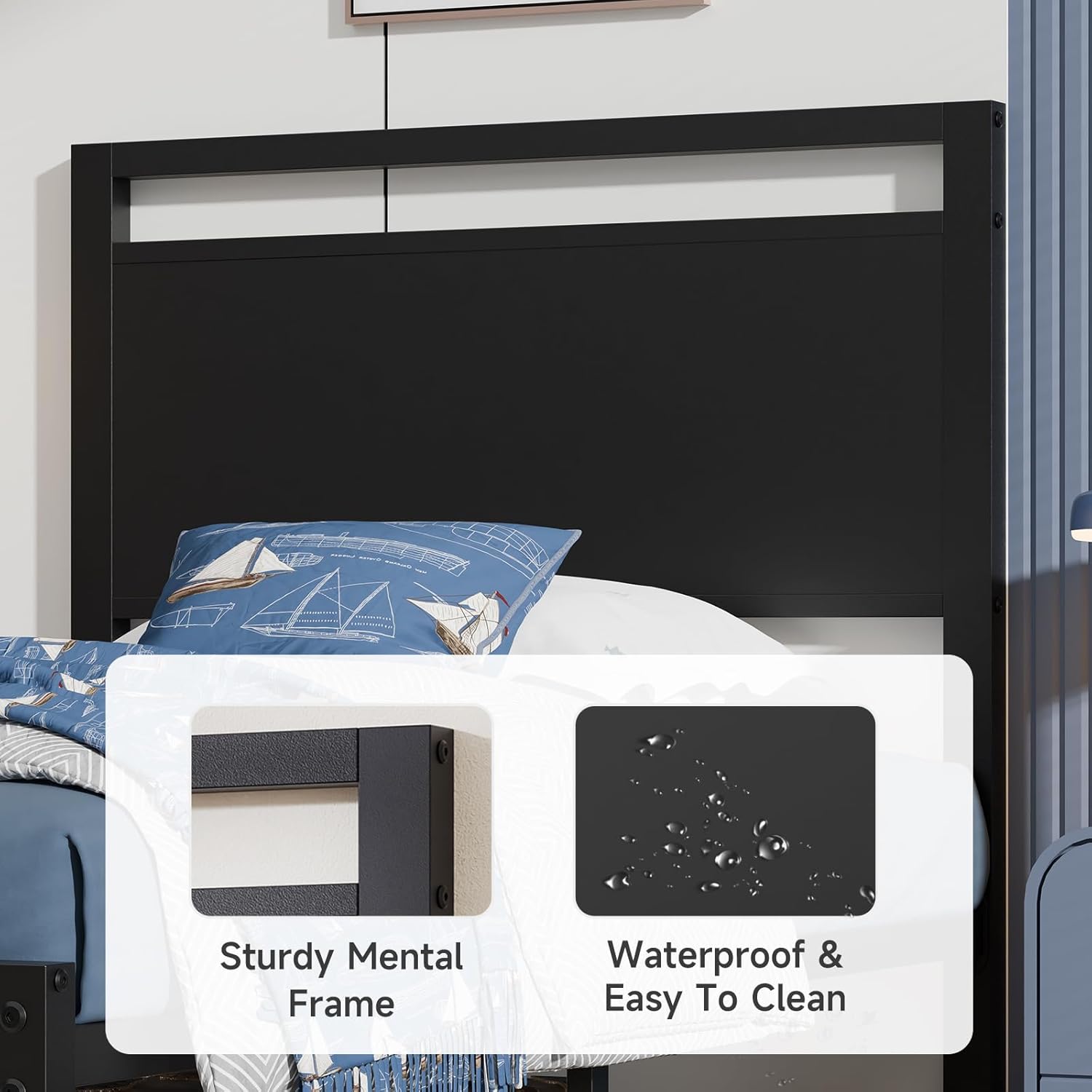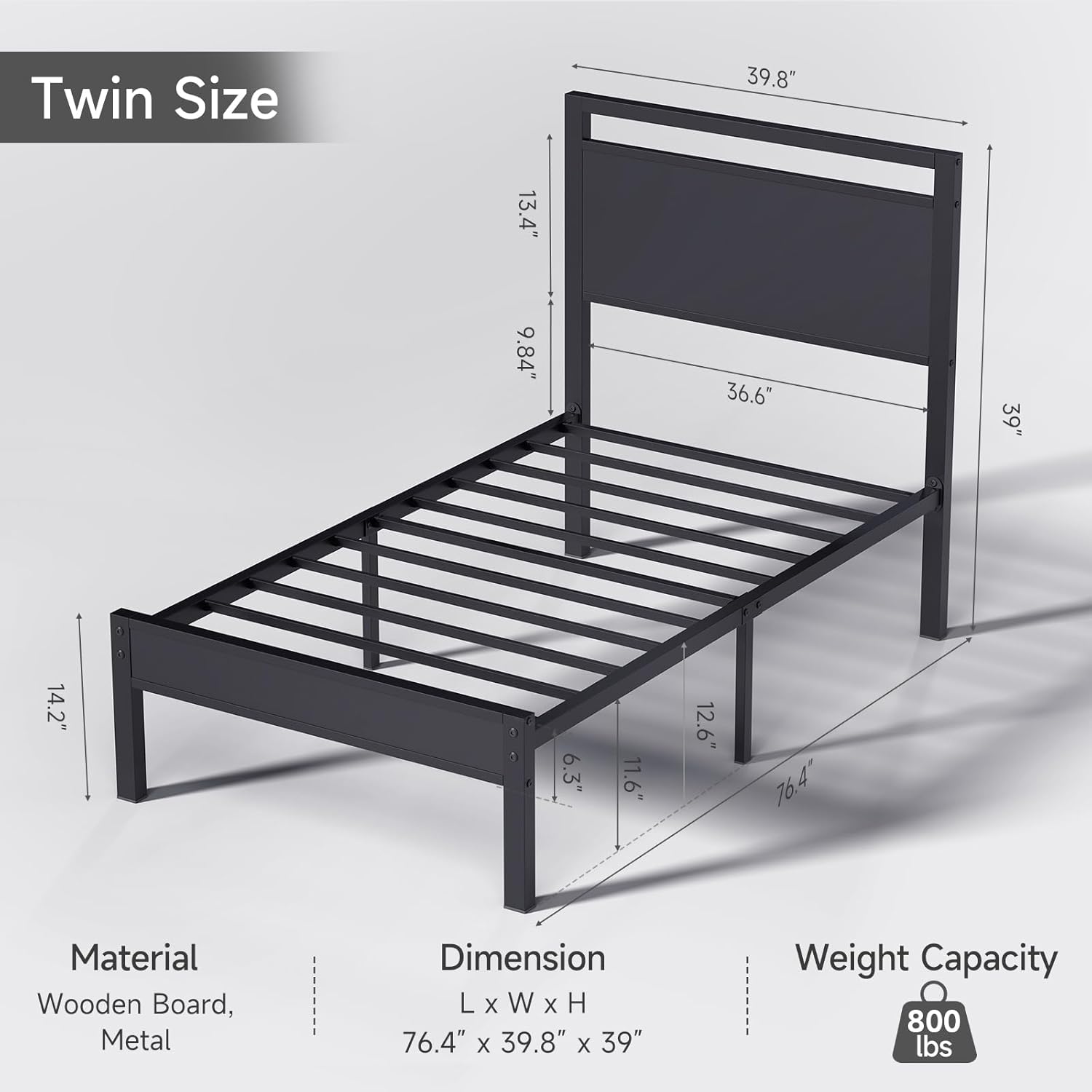 Z-hom Upgraded Twin Bed Frames, Heavy Duty Metal Sturdy Bed Frame Twin Size with Modern Wood Headboard & Footboard, Stable Platform Bed Furniture Bed Storage, No Noise, No Box Springs, Black