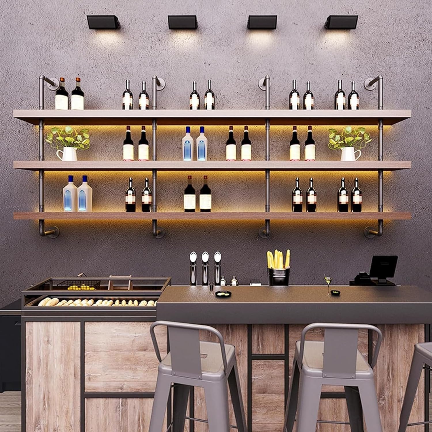 - ăAmple Storage Capacityă: The wall bar shelves serves as both a bar decoration and a spacious wine storage cabinet. Whether unwinding at the small bar after a long day or hosting a party, this wall wine rack can store a large number of wines or spirits. It is also strong enough to support doubling as a storage shelf to keep the space tidy and orderly.