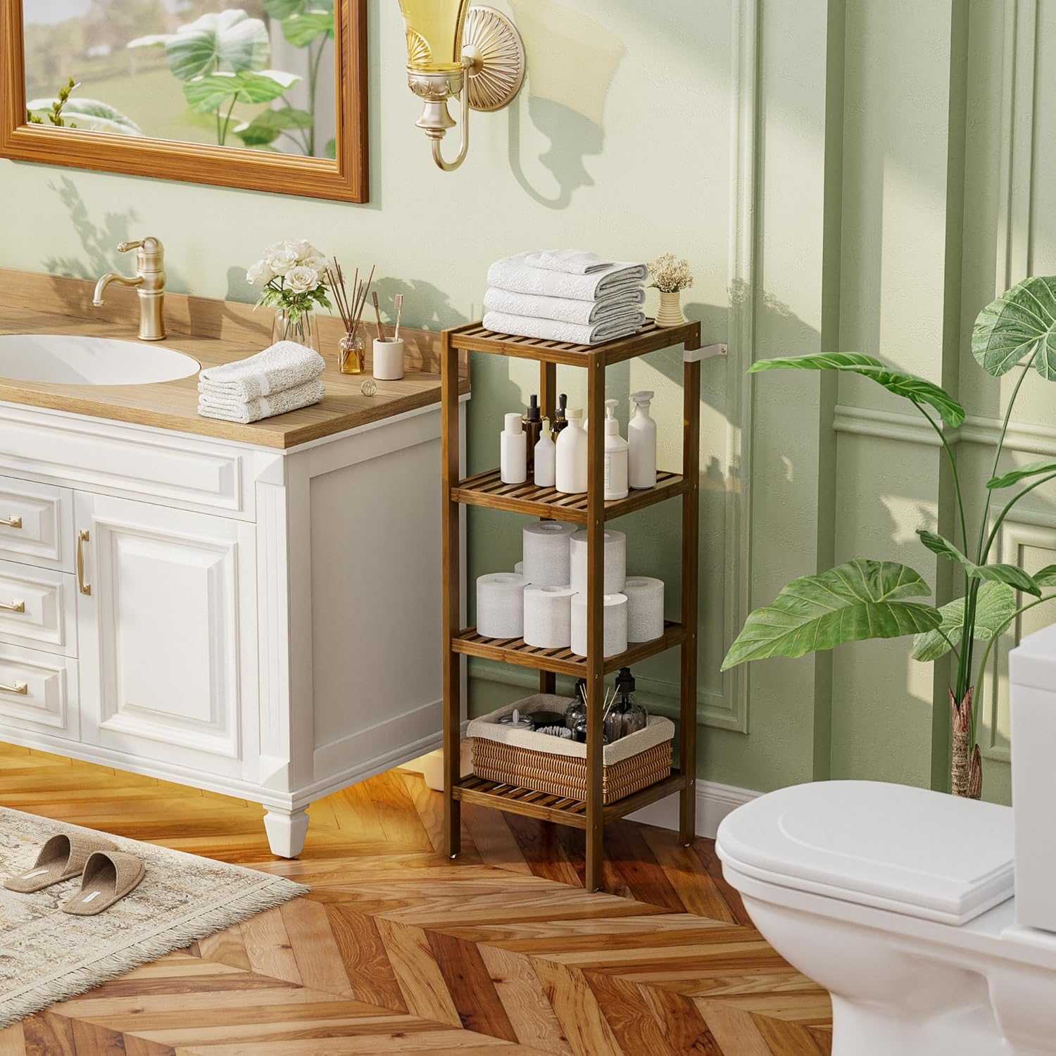 - β GREAT FOR SMALL SPACE STORAGE: With 4 11.8" tall open shelves, this space-saving bamboo shelf offers plenty of storage but only takes up 13" x 13.4" of floor space, perfect for narrow spaces or corners of room to store odds and ends