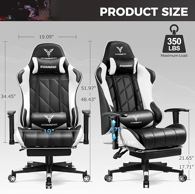 - High-Quality Materials: This high-back computer chair is well-crafted, we use high-quality PU leather material and embroidery to make the chair both functional and aesthetically pleasing. The chair has a weight capacity of 396 pounds, and its stable and sturdy material structure can provide support for gamers of all sizes. In addition, the upgraded support gas rod also extends the chair’s life expectancy .