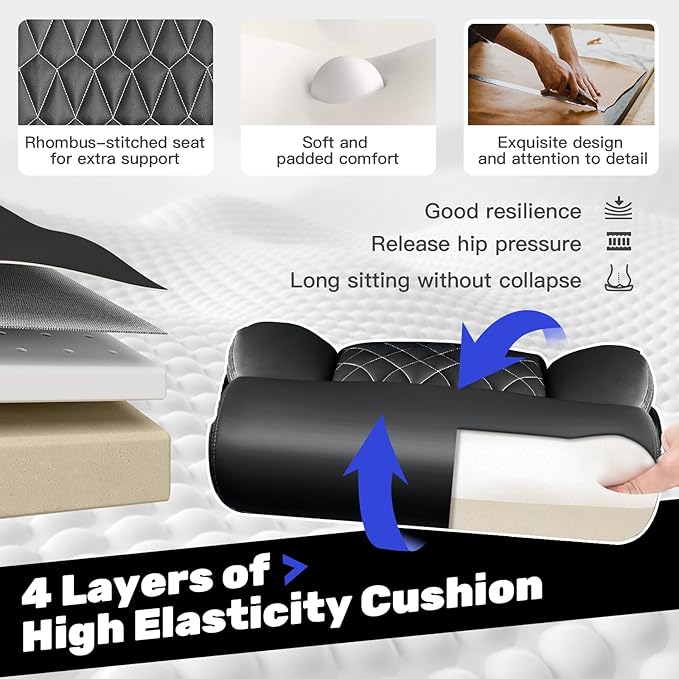 - 【High Back Comfortable Office Chair】: Enjoy the comfort of our high back leather office chair. The soft, full headrest provides effective neck support and relieves neck fatigue, and the wide, thick cushion relieves the pressure of sitting for long periods of time, ensuring all-day comfort;