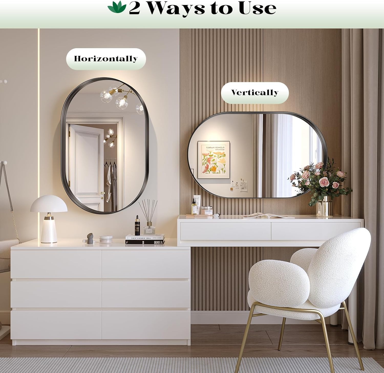 - 2 Pack Oval Mirrors: Our bathroom mirror pair offers more decorative options and practicality. You can hang them side by side or separately to enhance space and beauty, adding a stylish and layered look to your home