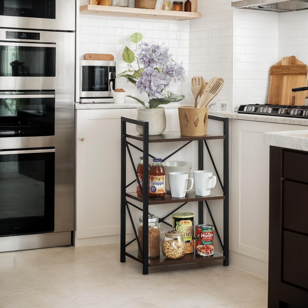 3 Tiers Bookshelf, Home Office Bookcase Shelf Storage Organizer for Bedroom, Living Room and Home Office, Walnut Brown(Small)