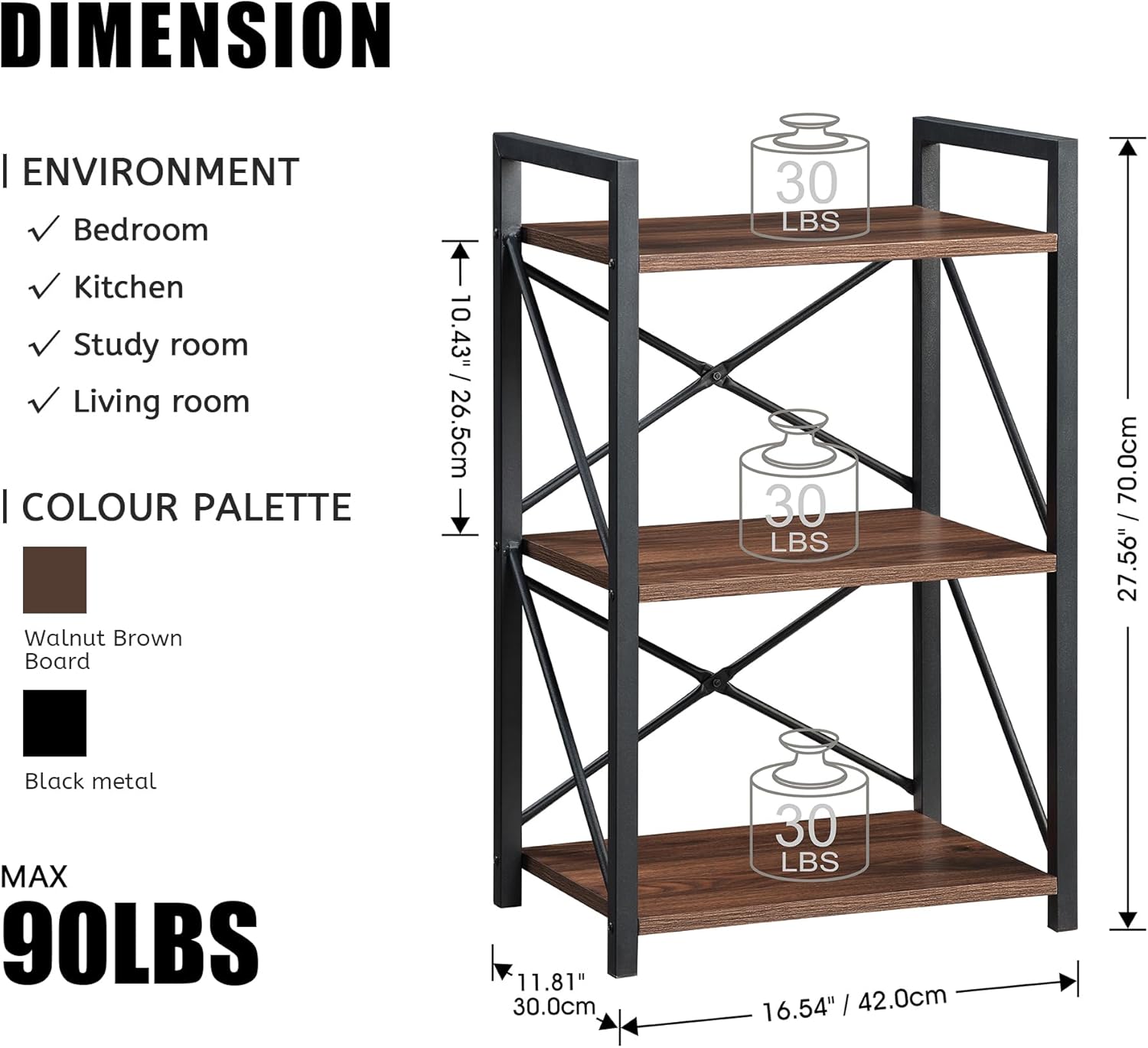 - Space-Saving : This shelf with 27.56" H * 16.54" W * 11.81" D can make the most of your limited space. small bookshelf for small spaces fit any room and creat more s torage space for your home