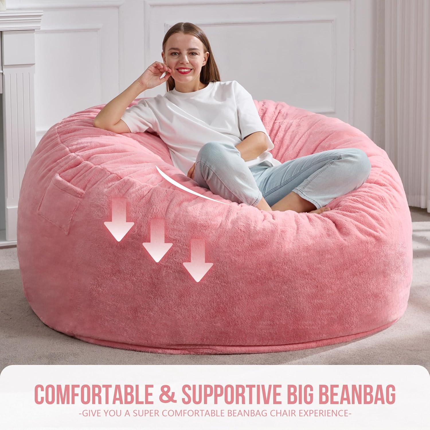 - Bean Bag with Filler: This pink bean bag chair is filled with high-resilience memory foam provides you with comfort and support. Giant bean bag chair comes in a condensed box, once open, the bean bags start to expand within few minutes, it will take 1-2 days to fully expand. Shake the whole bean bag chair after using a period, it will bounce back with comfort.