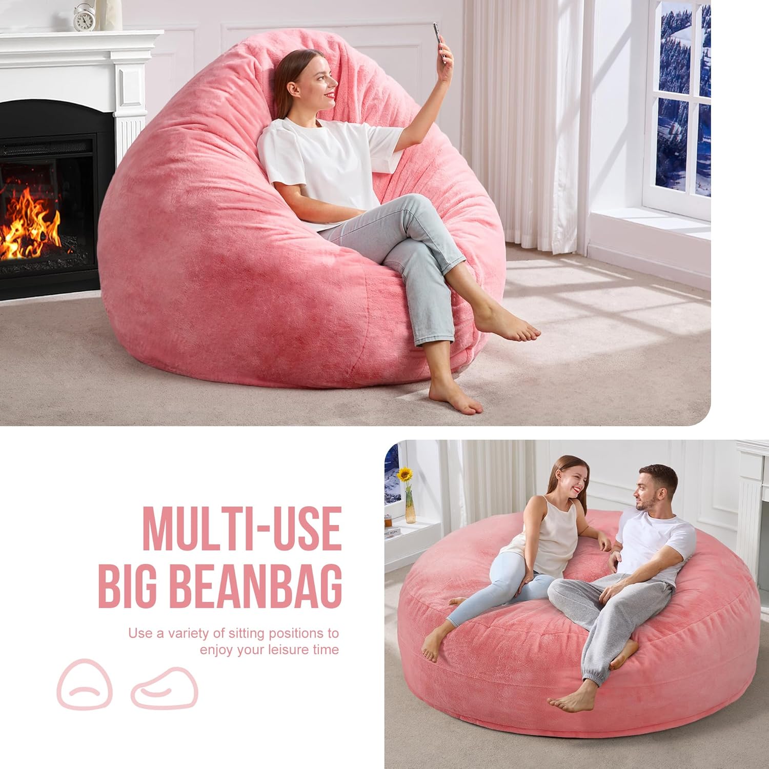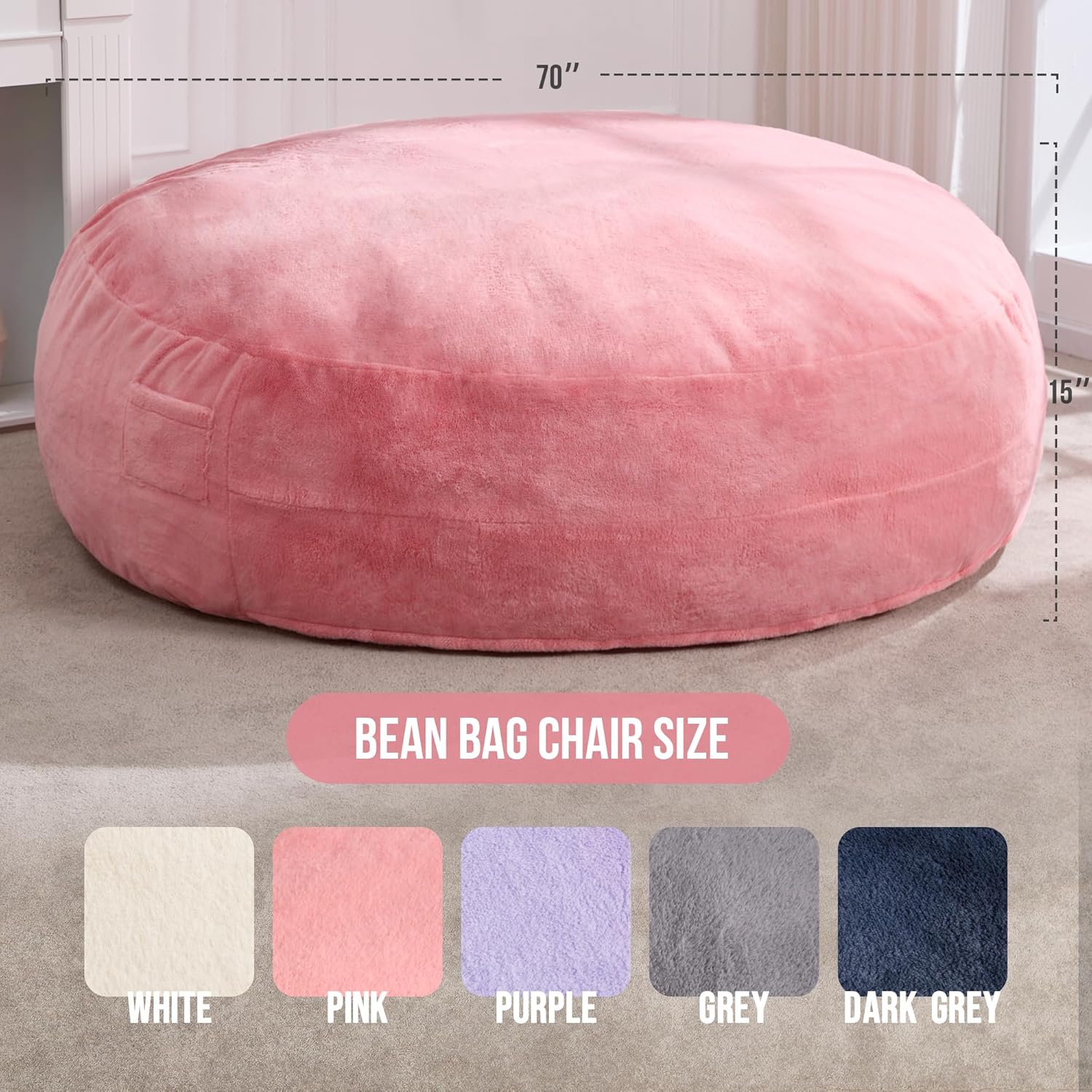 Hobestluk 6ft Bean Bag Chairs for Adults Large Beanbag Chair with Plush Faux Fur Cover Big Bean Bag Chair for Living Room Bedroom Dorm Office - Pink (70" x 70" x 15")