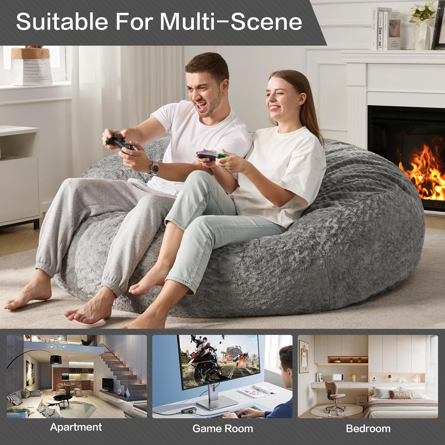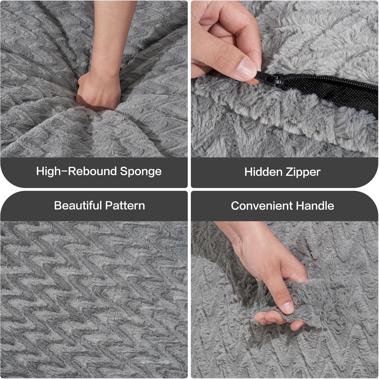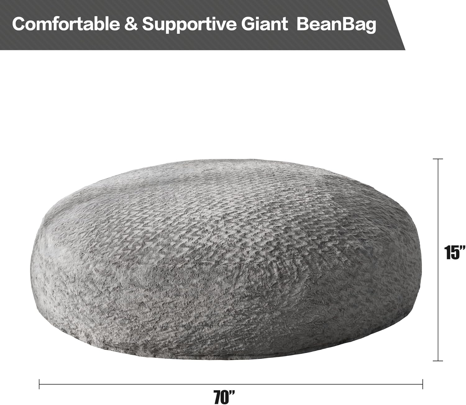 Hobestluk 6ft Bean Bag Chairs for Adults Large Beanbag Chair with Chevron Plush Fur Cover Big Bean Bag Chair for Living Room Bedroom Dorm Office - Grey (70" x 70" x 15")
