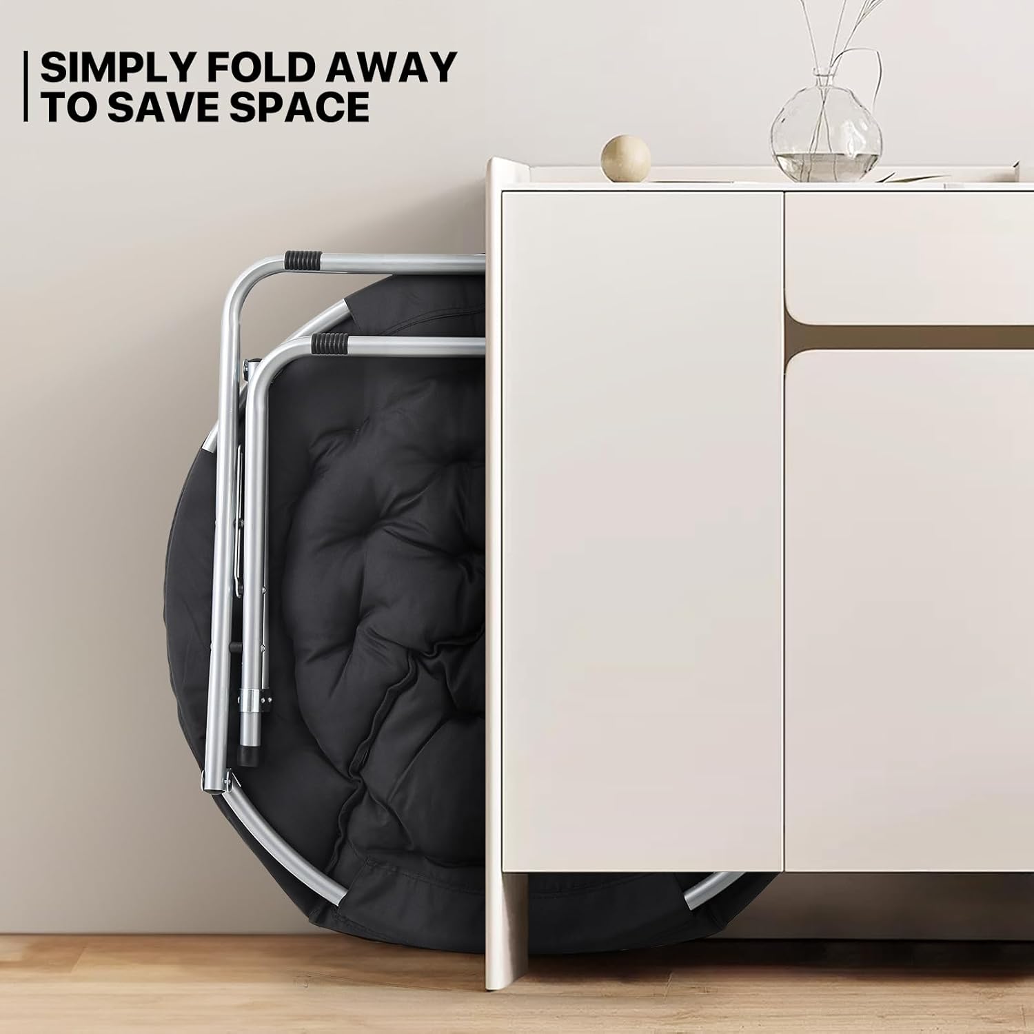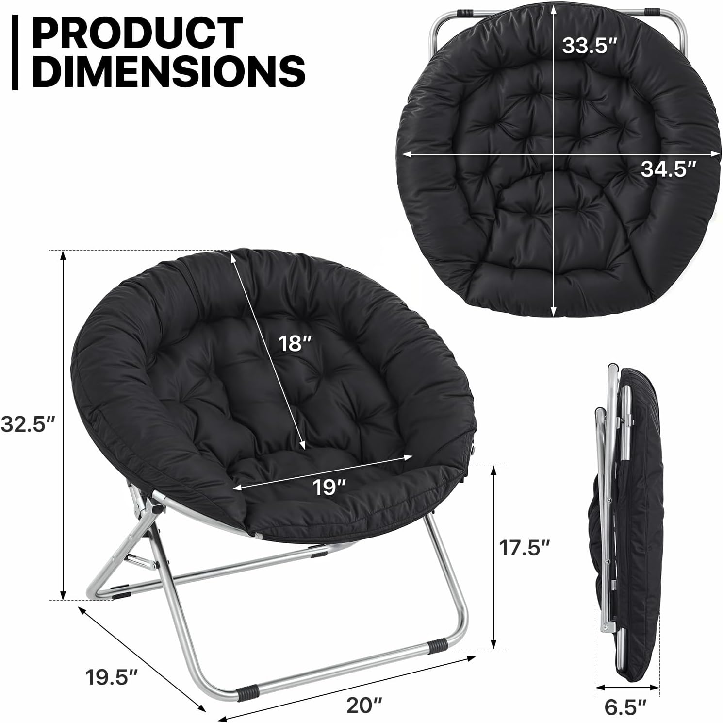 MoNiBloom Round Folding Saucer Chairs Set of 2 for Bedroom Living Room Dorm Foldable Metal Frame Comfy Soft Lounge Lazy Cozy Moon Chairs for Teens (Black)