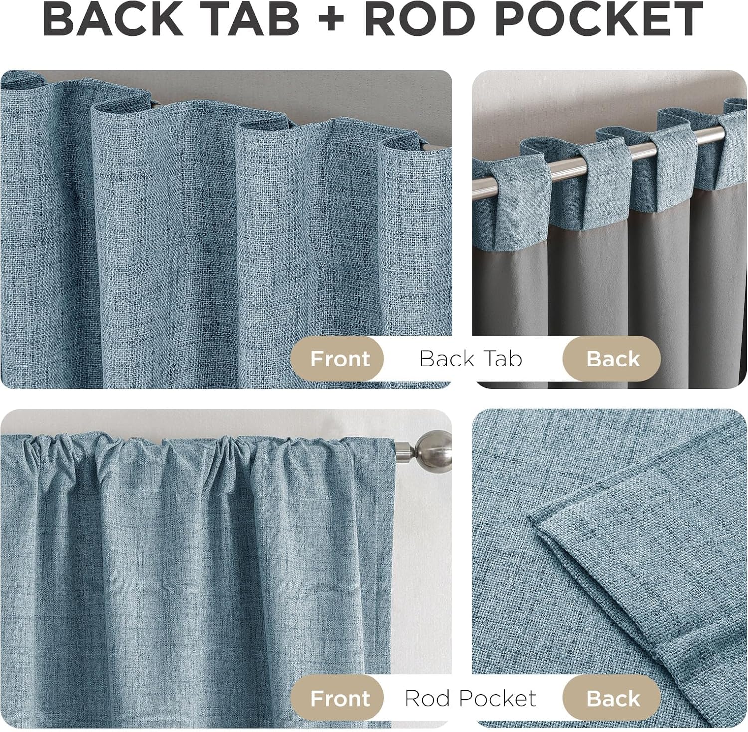 - Rod Pocket and Back Tab Design for easy installation.