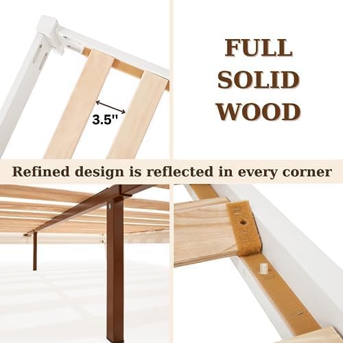 - DESIGN FOR DURABILITY: The solid wood king bed frame wood white and tapered legs with durable powder coating a touch of warmth and original elements to the mid century platform bed frame king; Both King bed frame wood and white wood queen bed no headboard can support up to 800 pounds