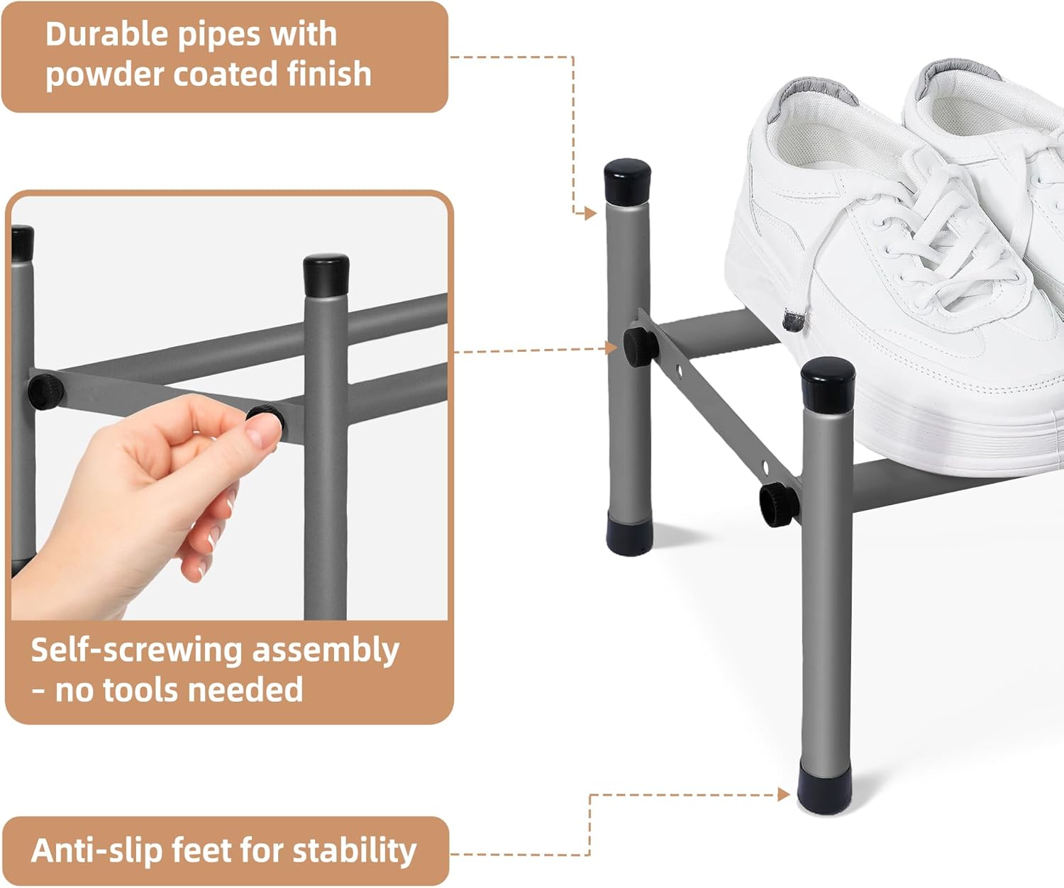 - STACKABLE DESIGN: Maximize vertical storage with a stackable design! Combine multiple tiers, such as 2-Tier, 4-Tier, or even 8-Tier, to meet your specific needs. Perfect for small spaces, this metal shoe rack keeps your home organized and clutter-free.
