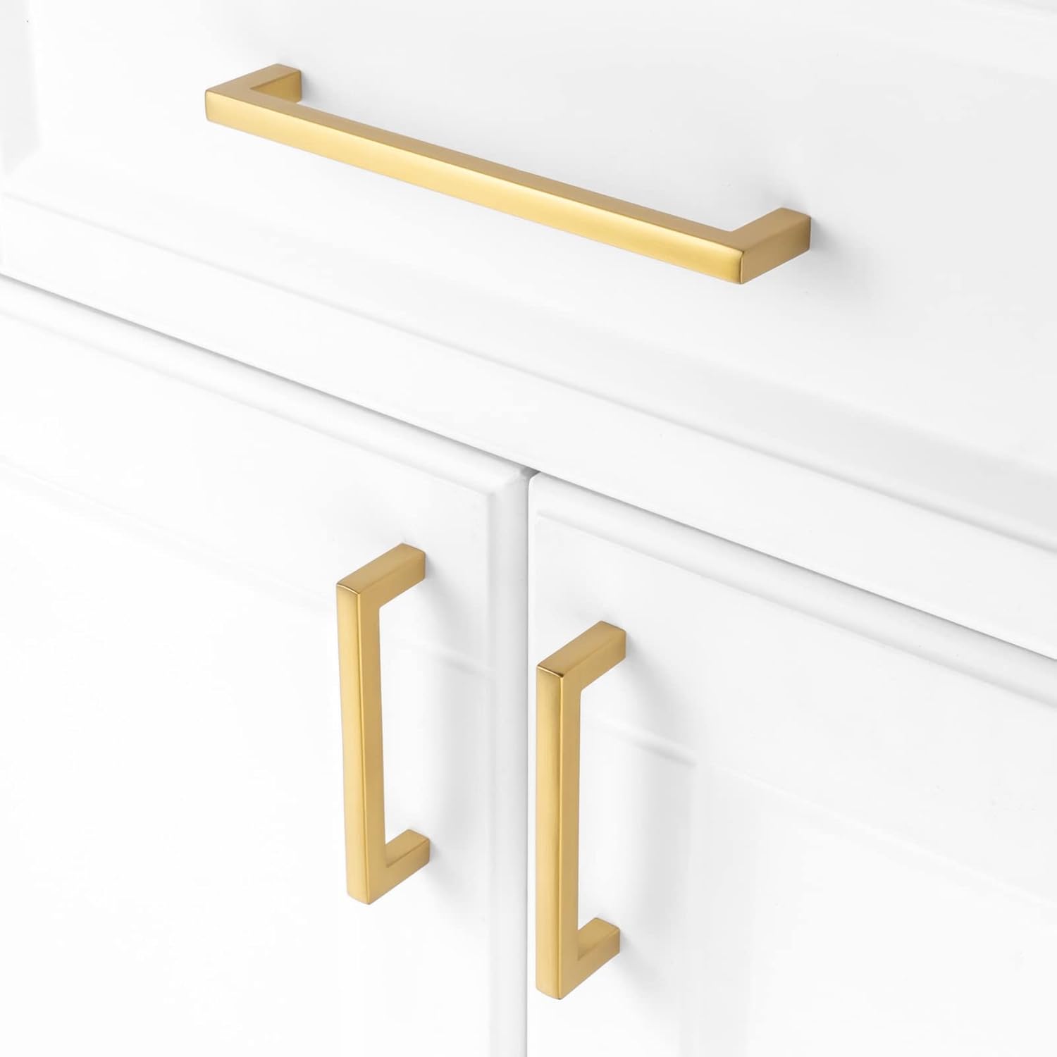 KOOFIZO 20-Pack Solid Square Bar Cabinet Handle - Brushed Gold Furniture Pull, 6.3 Inch/160mm Screwhole Distance for Kitchen Cupboard Door, Bedroom Dresser Drawer, Bathroom Wardrobe Hardware