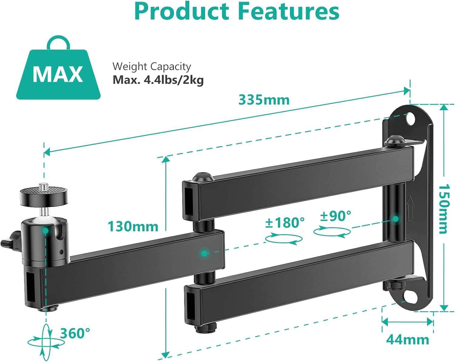 - Simple and convenient: Arm swivels at +180°/-180°. Monitor head tilts max 90° dowm and 30° up, and 360° Rotation head for different circumstance