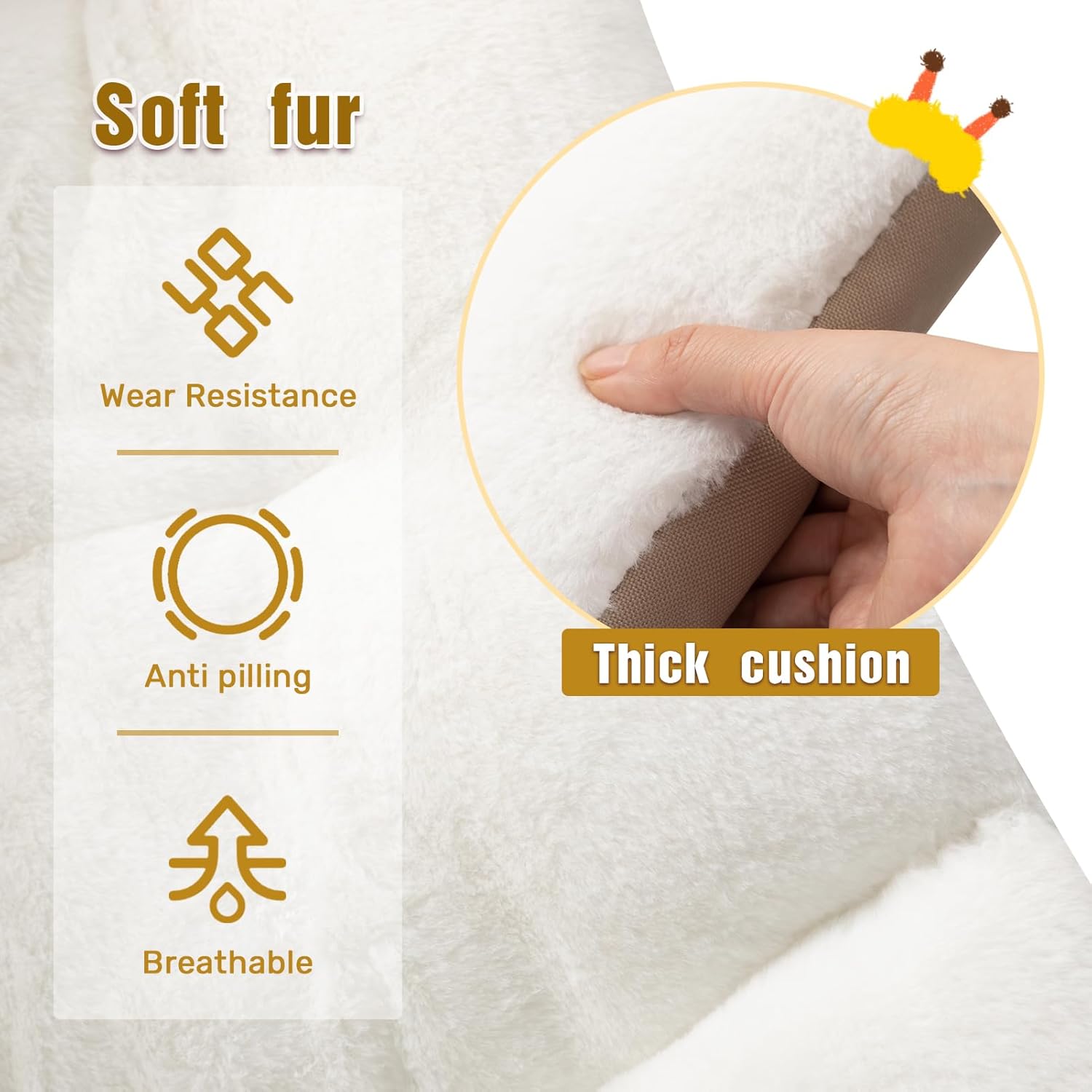 HollyHOME X-Large Saucer Chair with Foldable Ottoman, Comfy Oversized Folding Chair and Folding Footrest Stool Set, Faux-Fur Reading Chair and Footstool for Living Room, Bedroom, White Chair&Stool
