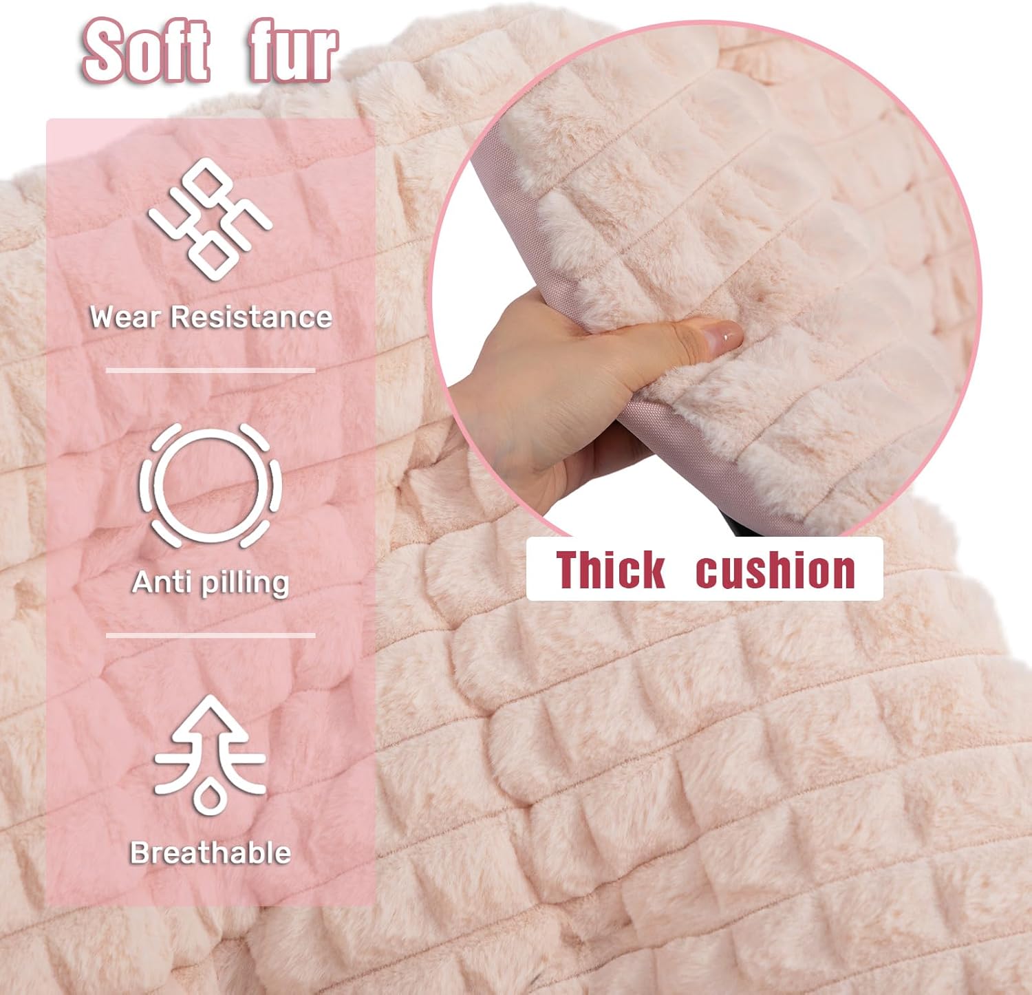 HollyHOME X-Large Saucer Chair, Comfy Oversized Folding Chair, Faux-Fur Reading Chair for Teens, Adults, Foldable Accent Chair, Metal Lounge Chair for Living Room, Bedroom, Dorm, Grid Champagne Pink