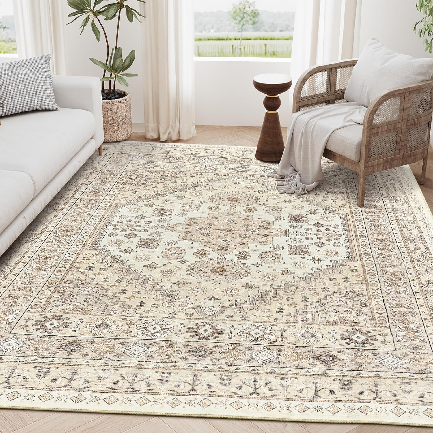 zesthome 5x7 Area Rugs - Ultra-Thin Washble Rug, Stain Resistant Anti Slip Backing Rugs for Living Room,Bedroom, Vintage Home Decor Area Rug