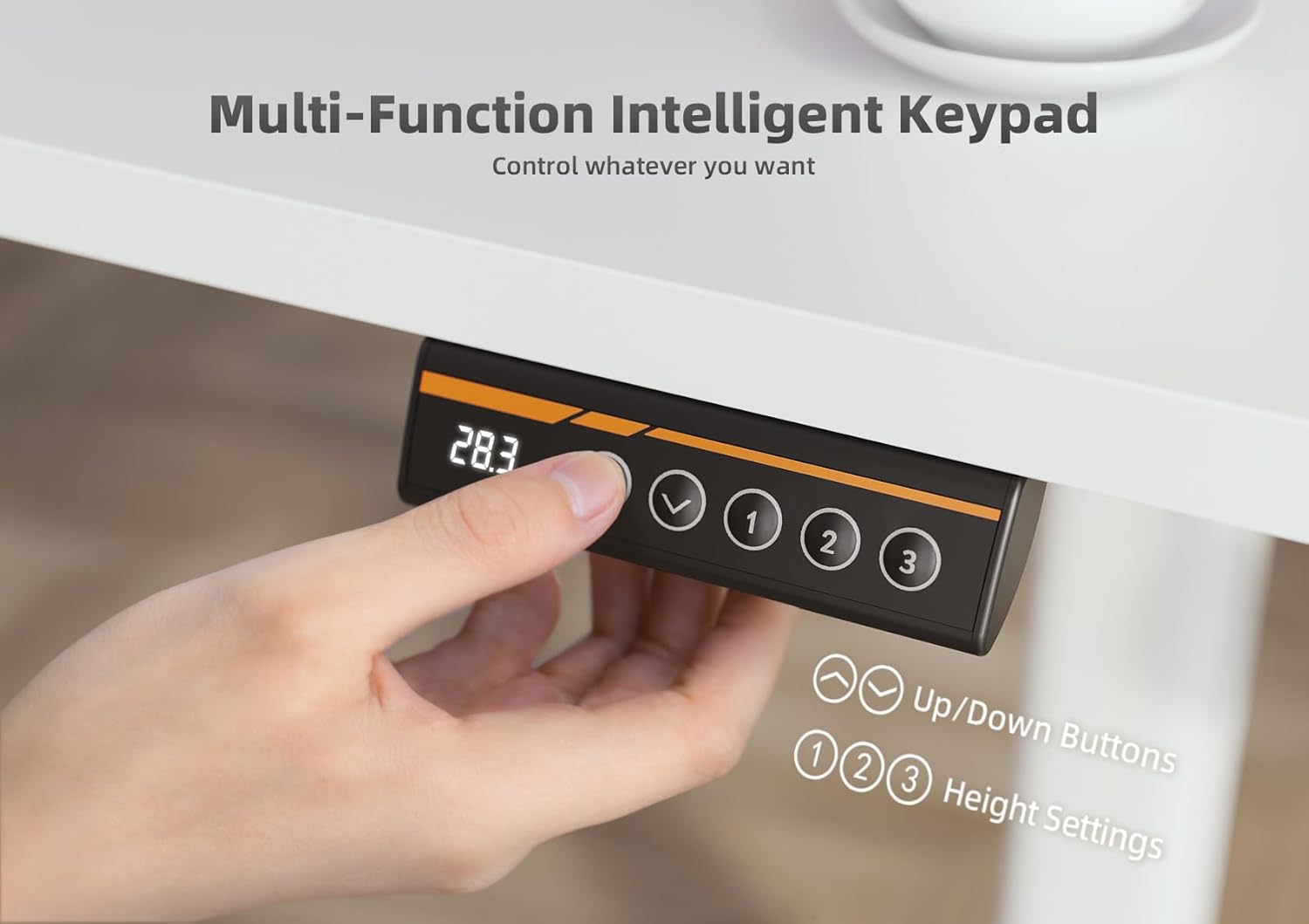- Electric Height Adjustment: Electric standing desk features a robust motor, allowing you to effortlessly adjust the height from 28.3 inches to 46.5 inches (including the 2.36-inch desktop thickness). With 3 programmable height presets, you can easily find your preferred height for maximum comfort and convenience.