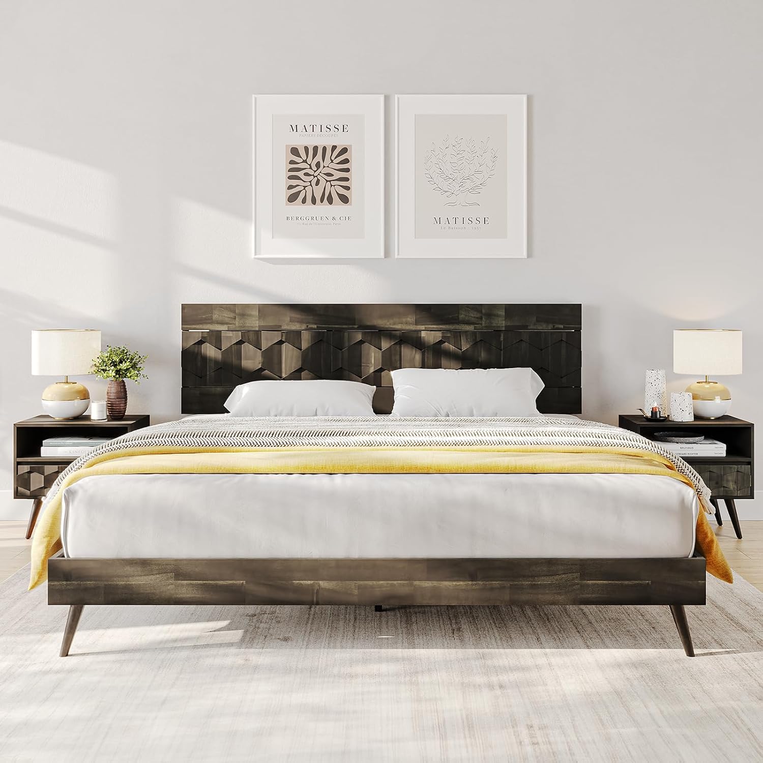 - HANDCRAFTED GEOMETRIC PATTERN: Our king bed frame and headboard features a rustic style with a modern touch, showcasing a unique and striking geometric pattern with a US patent pending design that enhances the beauty of wood; Create a standout and stunning centerpiece in your bedroom