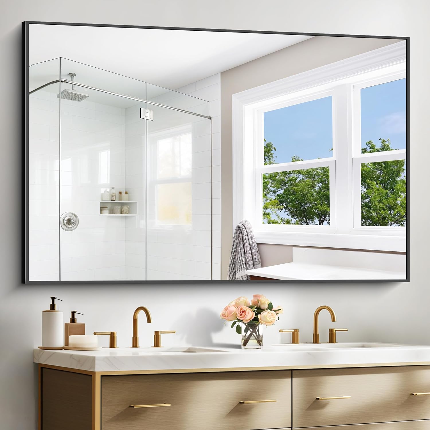 - LARGE SIZE:60x40 inch large bathroom mirror adds a sense of space to the room and adds depth to your interior. It combines style and practicality, making it an ideal size for furniture decoration